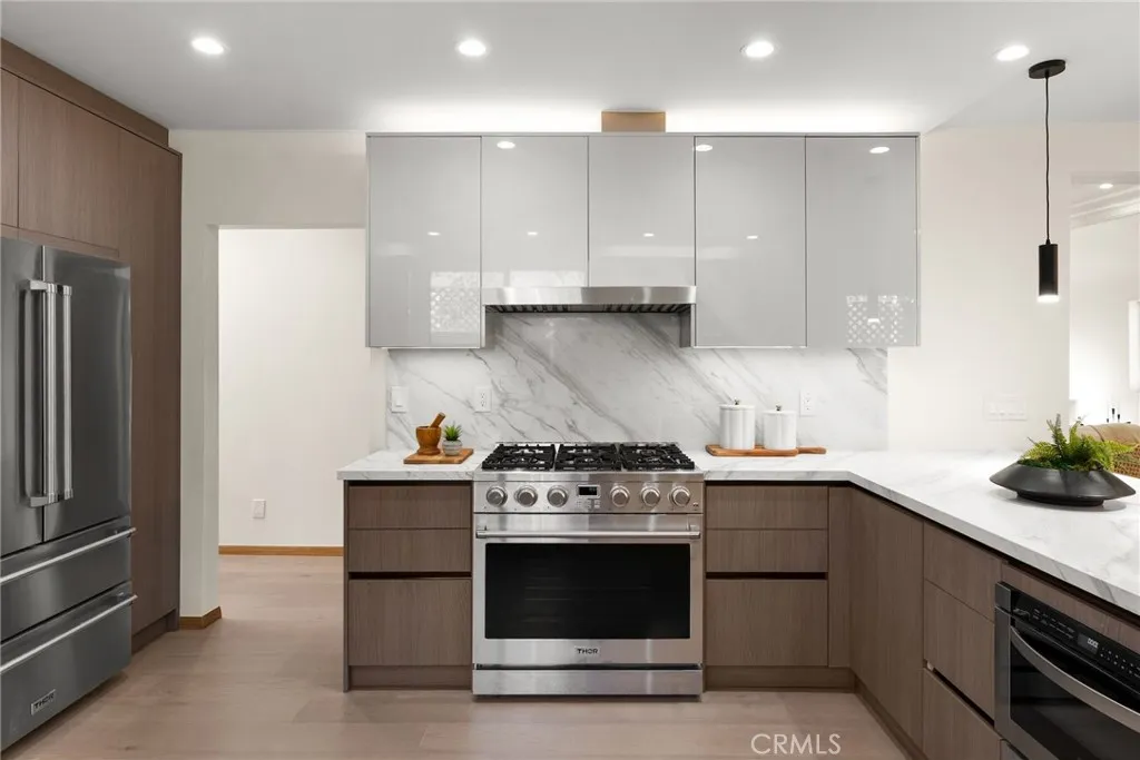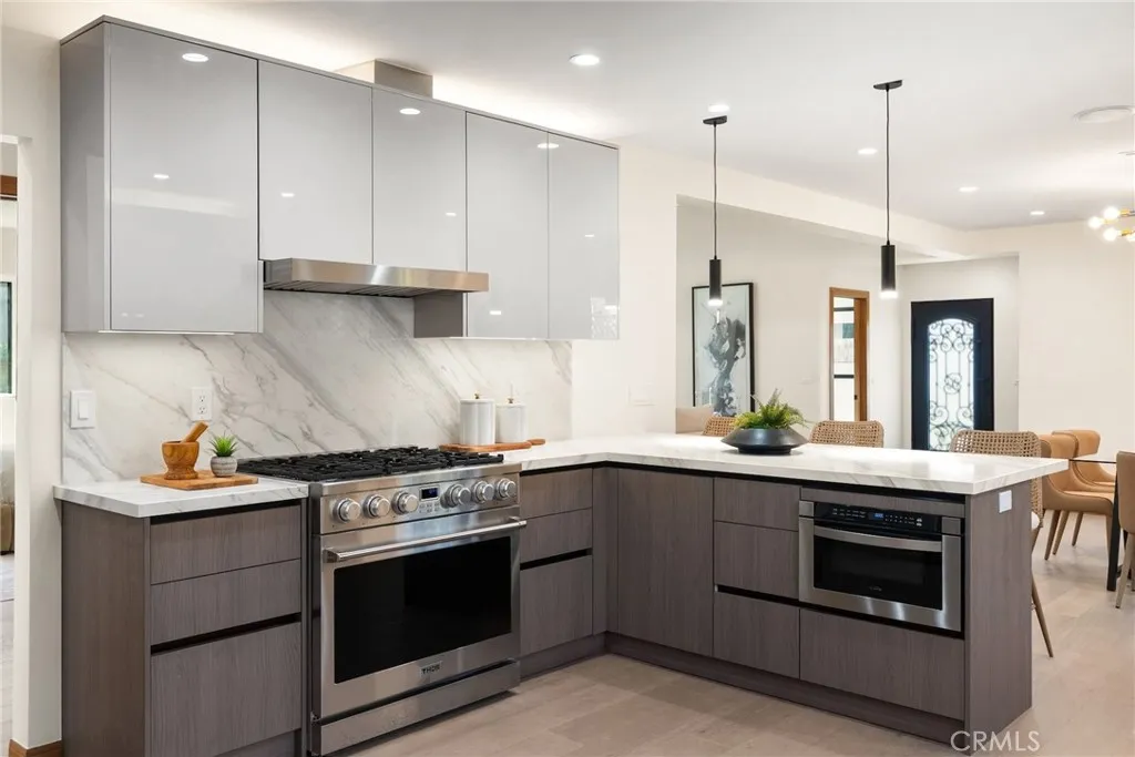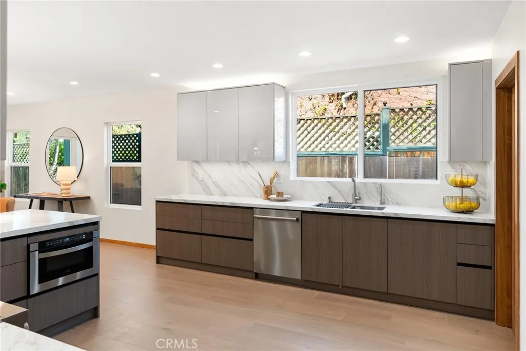 Welcome to 348 & 350 South Orange Drive, an exceptional opportunity to own two homes for the price of one in a prime central Los Angeles location. Step into this fully reimagined 2025 remodel, a gated and private 4-bedroom, 4.5-bath home where every detail reflects high-end craftsmanship and sophisticated style. As you enter the home, you’re immediately greeted by an inviting open-concept floor plan that seamlessly connects the dining area, kitchen, and living room. Natural light floods the space through large windows, highlighting the white oak floors, recessed lighting, skylights, and designer fixtures that bring warmth and modern elegance throughout. The chef’s kitchen is a show-stopping centerpiece, featuring professional-grade appliances, custom cabinetry, and stone-slab countertops designed for dining and entertaining. A dedicated laundry and storage room leads to a versatile basement, perfect for a home office, gym, or creative studio. The adjacent dining area offers an ideal setting for gatherings, while the spacious living room with its statement fireplace provides a cozy focal point for relaxing or entertaining guests. The primary suite is a peaceful retreat, complete with a large walk-in closet, a built-in closet & make-up area. A spa-inspired bathroom with a walking shower & a soaking tub. All bedrooms are en-suite with generous closet space, built-in sound systems, and motion lighting for modern comfort. The private backyard oasis offers lush landscaping, artificial grass, and plenty of room for dining, entertaining, or adding a future pool or spa. The detached ADU includes a 1-bedroom, 1-bath layout with its own living room, dining area, and kitchen, ideal for guests, extended family, or additional rental income. Every major system has been replaced, including electrical, plumbing, roof, and much more. The property also features a sound system, security cameras, motion lighting, and custom built-in cabinets and bookshelves. The front yard provides additional outdoor space to enjoy the charming neighborhood atmosphere, the perfect balance of privacy and community. Moments from Hancock Park, Larchmont Village, 3rd Street, The Grove, Hollywood, premier dining and shopping centers, this home offers the very best of California living in a vibrant yet peaceful central Los Angeles neighborhood, all within the top-rated Third Street School District. Come experience this exceptional home for yourself, fall in love, and call it home.