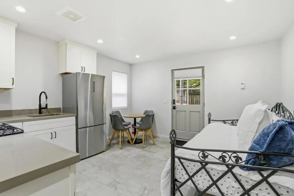 This thoughtfully updated Carmel-by-the-Sea property offers the rare advantage of a separate guest unit (ADU), providing exceptional flexibility for extended family, guests, or a private home office. Set behind a gated entry with a paver driveway, the property features a welcoming arrival and an attached one-car garage for convenience and storage. The guest unit showcases a bright, open layout with a modern kitchen featuring stainless steel appliances, shaker cabinetry, stone countertops, and recessed lighting. A comfortable sleeping area, dining space, and an updated bathroom with tiled shower-tub surround complete the interior, creating a clean and inviting living environment. Outside, a private fenced yard and garden area provide separation between the main residence and guest quarters, offering both privacy and outdoor enjoyment. The property is well-maintained and thoughtfully improved, presenting a unique opportunity to enjoy the charm and lifestyle of Carmel-by-the-Sea with added versatility and comfort.
