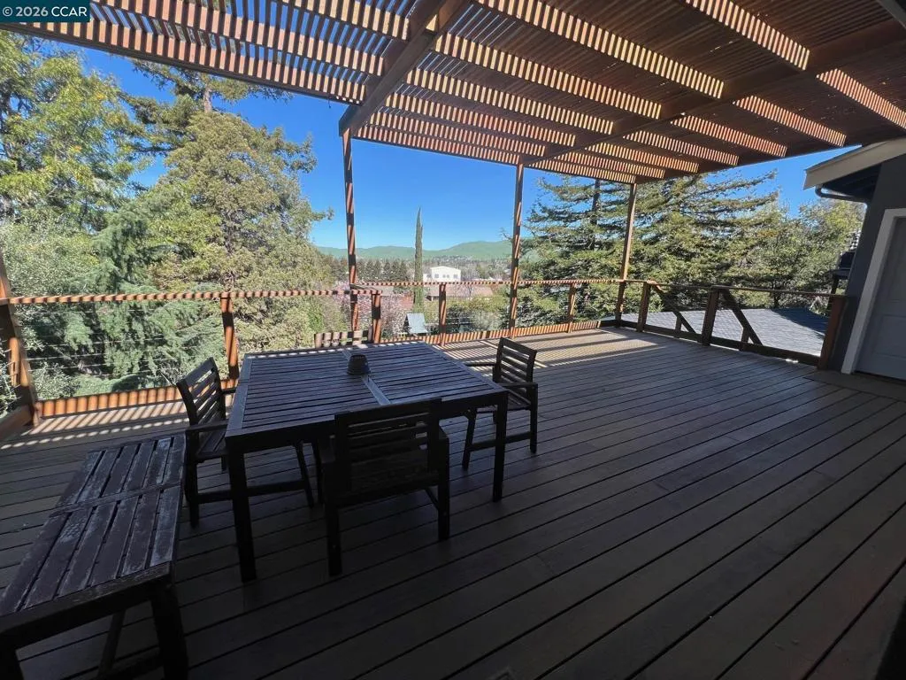 Updated 4 bedroom, 3 bath on private over half acre premium lot, 5 full size garages, 2 car on the street and workshop with full bath and 3 garages in back down side driveway, possible adu or expansion room, great for car enthusiasts, fourth bedroom or theater room with sound proof insulation already installed. cherry wood counters in kitchen with gas stove and new oven, 70k clear heart redwood deck with views of the valley, remodeled master bath with granite tile
