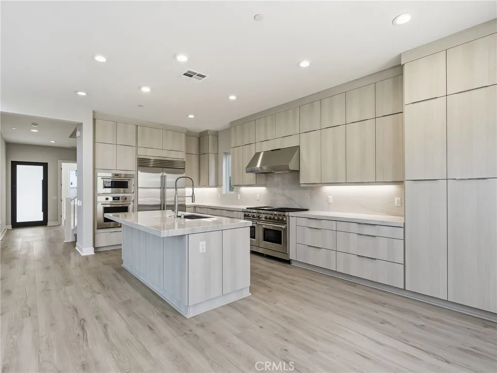 Welcome to Elevate at Great Park Neighborhoods, Irvine — a luxury Toll Brothers community. This stunning Melina floor plan offers 5 bedrooms, 5 baths, and approximately 3,627 sq. ft. of bright, airy living space with no direct rear neighbors. A dramatic two-story great room with a modern linear fireplace creates a striking focal point, complemented by upgraded cabinetry, Wolf appliances, Sub-Zero refrigerator, Arizona Tile quartzite countertops with full backsplash, and Mohawk LVP flooring throughout, with tile in all baths. Paid-off solar adds exceptional value. Designed for modern living, the home features two stories plus a third-floor loft with private deck, bedroom, and full bath — ideal for entertaining or a private retreat. Walking distance to Cadence Park School (K–8) and Portola High, and moments from Great Park amenities, trails, and shopping. Luxury. Privacy. Prime Irvine location.