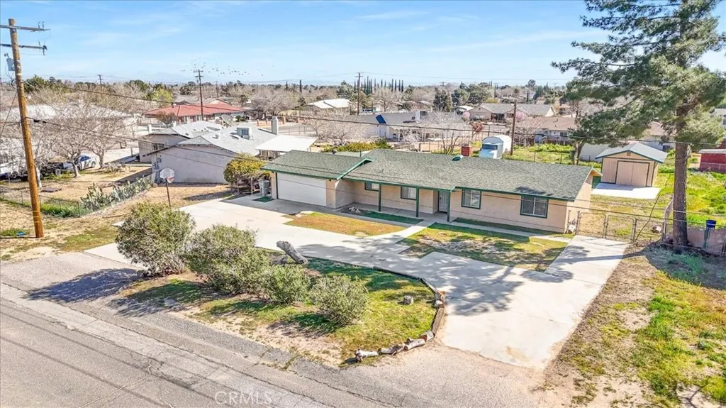 Welcome to this move-in ready 3-bedroom, 2-bath single-story home located in a highly desirable Hesperia neighborhood. This well-maintained home features vinyl flooring throughout, a functional layout, and a cozy fireplace in the living room that creates a warm and inviting focal point. The property includes an attached bonus room/flexible space that provides additional usable area beyond the recorded square footage—perfect for a home office, playroom, gym, or hobby space. Recent improvements include a brand-new HVAC system installed just a few months ago, providing added comfort and efficiency for the new owner. Outside, the property offers excellent parking and access with a half-circle driveway in front and a pull-through side gate leading to the backyard—ideal for extra vehicles, trailers, or recreational equipment. The backyard also features a large work shed/workshop with a newer shingle roof, providing plenty of room for tools, projects, or additional storage. This property offers flexible living space, valuable upgrades, and great outdoor functionality in a desirable location.