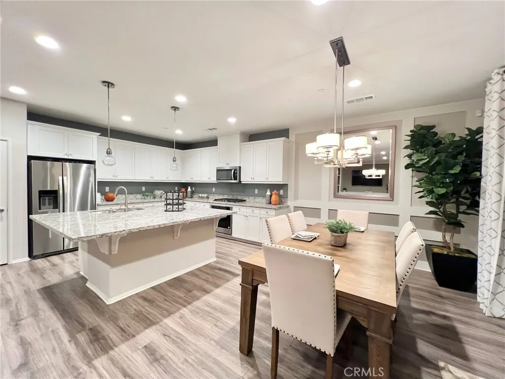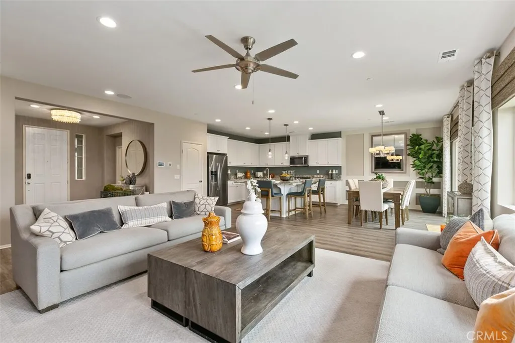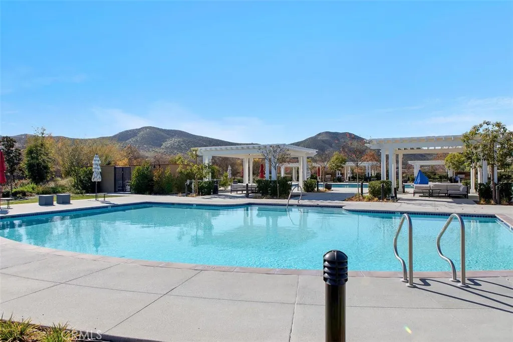 Resort-Style Living in Audie Murphy Ranch – Former Model Home Across from the Clubhouse! Welcome to this gorgeous former model home located in the highly sought-after Audie Murphy Ranch community in Menifee, perfectly positioned directly across the street from the clubhouse, pool, and resort-style amenities. This stunning 4-bedroom, 3-full-bath home with solar is loaded with custom upgrades and designer touches throughout. Step inside to a grand foyer featuring a beautiful chandelier and an elegant entry that flows seamlessly into the spacious family room with custom built-in media niches. The open floor plan continues into the formal dining area with direct access to the backyard patio, creating the perfect space for entertaining. The chef’s kitchen is both stylish and functional, offering: A huge center island with additional seating and prep space, White cabinetry, Pendant lighting, Black and stainless-steel appliances including refrigerator, Large walk-in pantry, The first floor also includes a convenient bedroom and full bathroom, ideal for guests, multi-generational living, or a home office. Upstairs you’ll find additional built-in storage and a large window that fills the space with natural light, along with an oversized loft featuring built-ins that can easily serve as a media room, office, playroom, or flexible living space. The primary suite feels like a private spa retreat, featuring designer accents and shelving, along with a luxurious ensuite bathroom with dual-sink vanity, separate soaking tub, walk-in shower, privacy door, and a huge walk-in closet. The secondary bedrooms are beautifully appointed with custom paint and lighting, and the guest bathroom is conveniently located nearby. Additional features include: Large laundry room with cabinets and shelving, Modern ceiling fans, Recessed lighting, Designer paint colors, Brand new flooring installed after photos were taken, 3-car garage with epoxy flooring. Step outside to a well-manicured backyard with mature trees, providing a peaceful setting to relax or entertain. Residents of Audie Murphy Ranch enjoy incredible resort-style amenities, including: Clubhouse, Multiple pools & spas, Fitness center, Sports parks, Hiking and biking trails, Playgrounds and community events. All just steps from your front door. This beautiful former model home with designer upgrades and a prime location truly offers the best of resort-style living in Menifee. A must see!