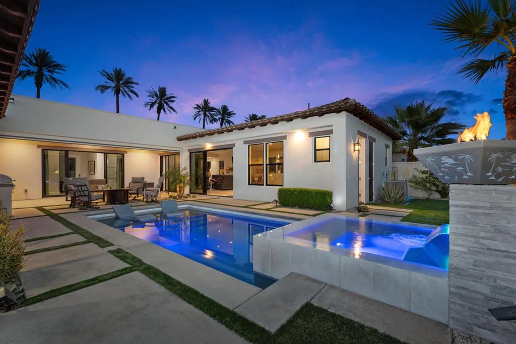 Welcome to The Province in Indian Wells, an enclave of luxury and refined desert living. This elegant GHA Collection Plan 3 residence offers 3,539 square feet of beautifully curated living space, featuring four bedrooms and six bathrooms. The home seamlessly blends classic Mediterranean architecture with contemporary design, showcasing premium finishes and sophisticated craftsmanship throughout. Modern conveniences include fully owned solar, EV charging, battery backup, whole-home water softener system, tankless water heater, and kitchen water filtration--all within a gated, private, and highly desirable close-in location.The outdoor living environment is truly exceptional--a private resort framed by lush desert landscaping. Bask on the sun-splashed pool deck and enjoy the soothing sound of the cascading waterfall, or unwind by the water feature as daylight fades. A dedicated pool bathroom enhances convenience, while the expansive covered patio--with electric shade screen and built-in stainless-steel BBQ--offers an ideal setting for elevated indoor-outdoor living. Thoughtfully designed for both intimate evenings and effortless entertaining, this space captures the essence of luxury desert lifestyle.Set against the dramatic backdrop of the Santa Rosa Mountains, Indian Wells offers an unparalleled blend of natural beauty and sophistication. Towering palms, vibrant gardens, world-class golf, upscale shopping and dining, and year-round sunshine make the city one of the true jewels of the Coachella Valley.Experience the exceptional. Schedule your private tour today.