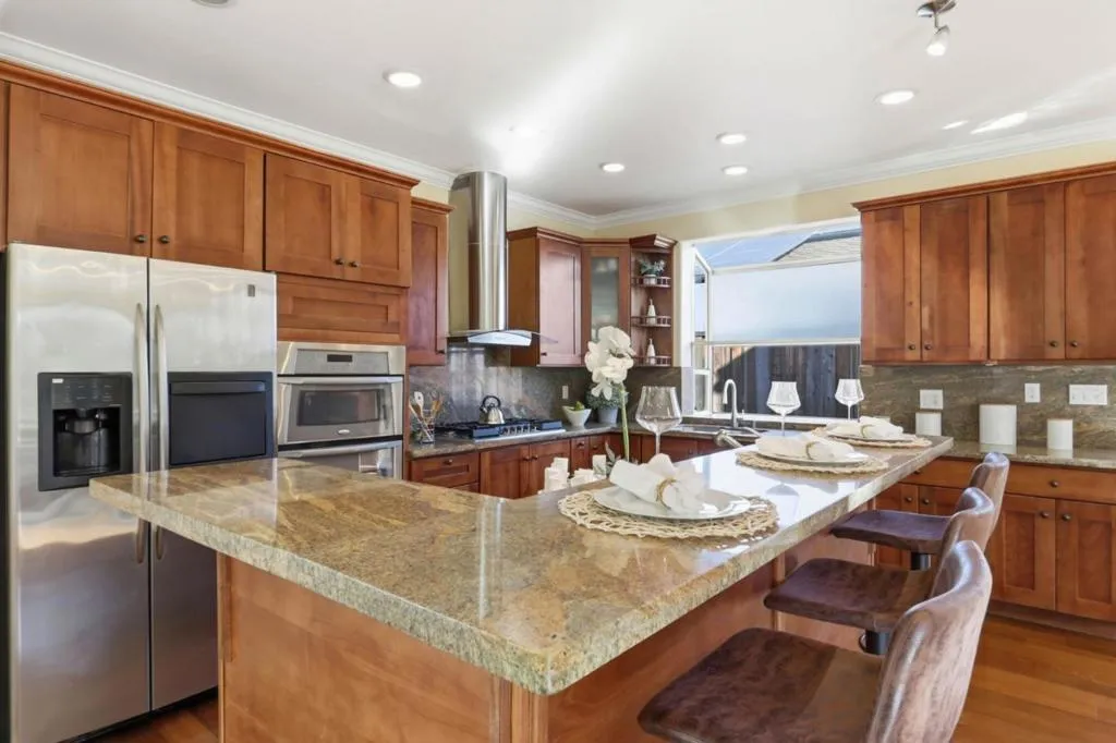 Welcome to this stunning single-family home nestled in a highly sought-after neighborhood of Cupertino. This 4-bed, 3.5-bath home has an expansive floor plan and an abundance of natural light. With its open-concept kitchen/dining/family space, this 19-year-old home is perfect for hosting large groups. Show off your culinary expertise in the stunning chef's kitchen complete with granite countertops, a 5-burner gas cooktop and a luxurious center island with its own sink. Enjoy the company of others in the same space, as the kitchen connects to a family room with endless possibilities for function and a large dining area equipped with a welcoming gas fireplace and a sliding door leading to the backyard. This house features a separate living room, a formal dining room and two ensuites. The spacious primary bedroom has two walk-in closets with generous amounts of storage space, and a bathroom that features double-sinks, a jacuzzi tub and shower. There is a 400 sq ft atrium w/brand new deck idea for gatherings with family and friends. it has high ceilings, hardwood floors, dual pane windows, dual A/C and heating systems and CAT-5 networking. You'll enjoy convenient and easy access to HWY 280/85, and close proximity to schools, parks, grocery stores, and major high-tech companies.