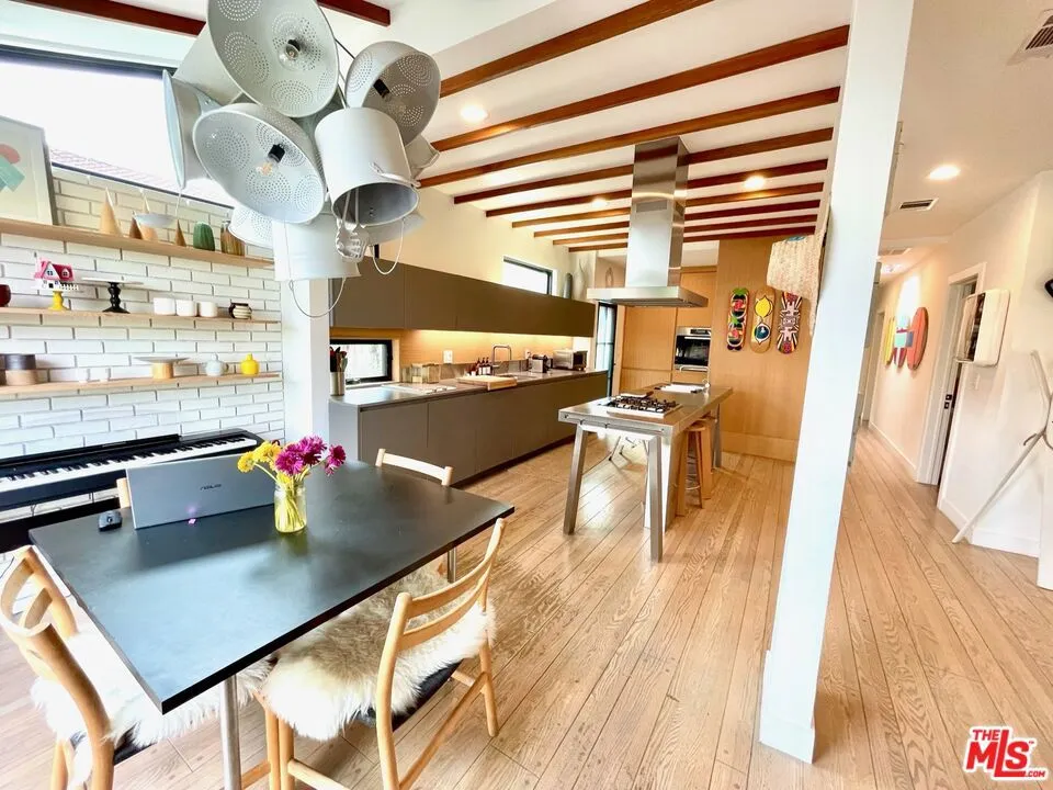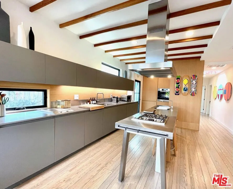 Form and function marry beautifully in this reimagined Spanish with a modern touch in the Helms Bakery neighborhood. An AIA award winning designer has created a masterpiece designed for an owner/user. You sense the quality of workmanship and materials the moment you enter the great room with indoor / outdoor flow and experience the sleek kitchen with island by Bulthaup and Miele appliances including a wok burner and a teppanyaki. Dine inside or open the french doors for outdoor entertaining with a gas fire pit. The living room features beamed ceilings maintaining the 1936 character with a stunning decorative fireplace. The three bedroom, two bathroom home's drama culminates at the primary suite with vaulted ceiling, an inviting private patio, 2 huge walk-in closets, with soaking tub and bidet toilet. With a separate two car garage this gated "smart" property delivers all you have been looking for in your next home across from Helms Bakery Complex, Apple, blocks from Platform, Ivy Metro Station, Downtown Culver City and bike paths. Find out why this vibrant neighborhood is THE place to live with great dining, shopping, jobs and recreation - right between downtown and the ocean.