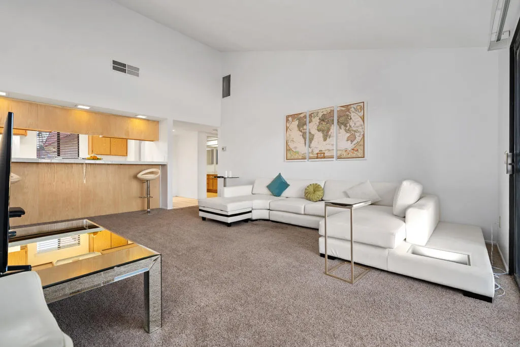Priced to Sell! This charming single-level, 1-bedroom, 1-bath condo offers an open floor plan with vaulted ceilings, abundant natural light, and sliding glass doors that create seamless indoor-outdoor living. Enjoy stunning views of the San Bernardino Mountains and the 12th green from the large windows throughout. A rare enclosed two-car garage--valued at $35K--comes equipped with its own cooling system and a brand-new washer and dryer. The spacious bedroom features a ceiling fan, generous windows, and a sizeable walk-in closet. Just steps away from the pool and jacuzzi, this property is perfect for sports enthusiasts, seasonal visitors, personal retreats, or investors seeking strong rental potential. Short-term rental friendly with affordable permits. Palm Desert Resorter is known for its active, resort-style living and features 20 pools & spas, 28 pickleball courts & 7 tennis courts, the largest and most active in the Coachella Valley 18-hole championship golf course & driving range, Bocce ball, cafe, pro shop, clubhouse, and dining room with live music and social events. HOA dues cover exterior maintenance, cable, internet, trash, and 24-hour security. A/C HVAC unit motor was replaced in 2022. Located minutes from Indian Wells Tennis Garden, Acrisure Arena, El Paseo shopping and dining, and convenient freeway and airport access. Come relax and enjoy resort living at its finest- your desert escape awaits!