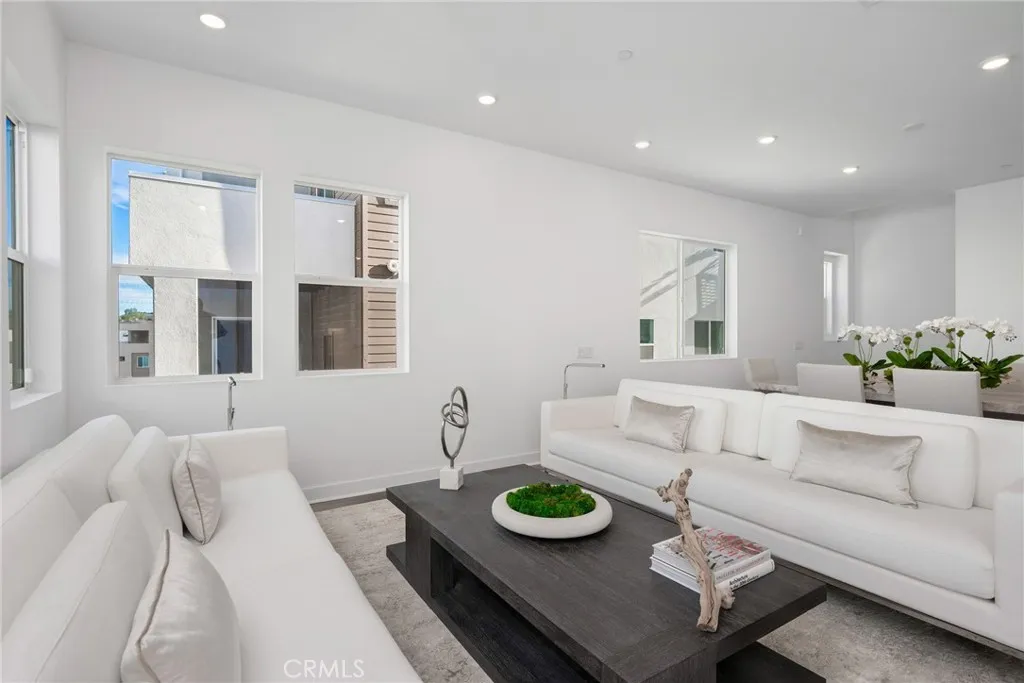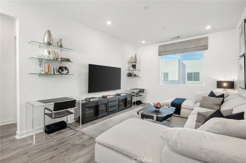 OFFERING A $20,000 CREDIT/INCENTIVE THAT CAN BE APPLIED TO PRICE REDUCTION, RATE BUY DOWN, CLOSING COSTS OR HOA FEES. Welcome to refined modern living in the master-planned FivePoint community, where luxurious homes are complemented by resort-style amenities, parks, and scenic hiking and biking trails. This sophisticated, solar-powered tri-level home features an open floor plan, soaring 10-foot ceilings, wide-plank luxury vinyl flooring, marble bathroom vanities, and a light-filled kitchen featuring quartz countertops and a dramatic oversized island—designed for elevated everyday living and effortless entertaining. The third-floor flex space is exceptionally large—an impressive retreat that distinguishes this home. With a generous footprint, it accommodates a media room, executive office, game room, or expansive lounge within one adaptable space. Each generously sized bedroom is designed as a private sanctuary, with space for a sitting area and its own en-suite bathroom, offering comfort and privacy for family members, guests, or multi-generational living. Spa-inspired baths feature floor-to-ceiling tiled showers, polished tile flooring in all full bathrooms, and elegant marble flooring in the powder room. Thoughtful convenience includes an impressively large storage room, solar panels for energy efficiency and long-term savings, and an oversized two-car garage equipped with an electric car charging station and space for storage or a home gym. Although attached on one side, the residence enjoys a private street-level entrance and direct interior garage access—an elevated feature enhancing security and everyday ease. This home is designed for modern lifestyles with exceptional flexibility and enduring appeal overall.