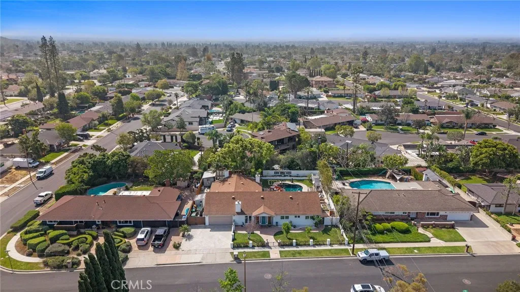 Welcome to effortless California living in the heart of North Tustin, found at 18642 Silver Maple. This tastefully upgraded single-story pool home features myriad upgrades and accoutrements adorning over 2,500 square feet of bright, open living space. Enter the Dutch door and be immediately impressed by what this home has to offer. With 4 bedrooms, 3 bathrooms, and a highly desirable dual primary suite floorplan—perfect for multi-generational living or hosting guests in comfort. The rooms are spacious, bathrooms upgraded, and options endless. Vaulted, open-beamed ceilings enhance the upgraded kitchen, featuring modern appliances and contemporary quartz cabinets as it provides a bright, open feel. Anchoring the home’s central living space, the kitchen flows naturally between the living and family rooms, with a dining area complete with cabinetry and comfort over travertine floors. The family room is a light-filled sanctuary, designed for easy everyday living and entertaining. Three fireplaces throughout the home create inviting spaces to gather and unwind during cooler evenings. Step outside to a backyard designed for year-round enjoyment. The upgraded freeform pool, tropical bamboo and palm landscaping, and multiple outdoor living areas create a private resort-like atmosphere. A grassy lawn next to the pool lends to play, relaxation, or outdoor gatherings under the Southern California sun. Additional highlights include RV parking, art studio/office/yoga room, an outdoor shower for post-swim convenience, and plenty of room to garden, entertain, or simply enjoy the peaceful surroundings. Ideally located within walking distance to excellent schools, close to shopping, dining, and major Orange County destinations while still offering a tranquil residential setting, this North Tustin retreat delivers the perfect balance of comfort, space, and lifestyle.