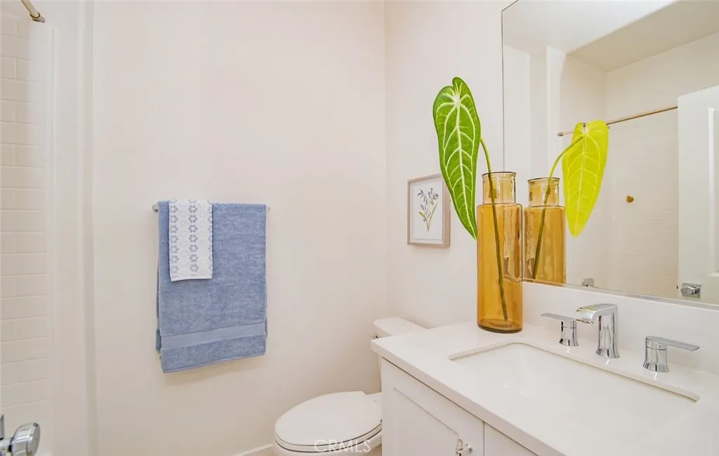 Welcome to this Stunning Three-Story Townhome Nestled in the sought-after Gated Community of Emerald Pointe. Thoughtfully Designed with Modern Living in Mind, this Spacious 3-Bedroom, 2.5-Bathroom Residence offers an Ideal Blend of Style, Function, and Location. Ground level is host to a Versatile Office with Vinyl Flooring that can easily be used as a Media Room or Workspace. 2-Car Garage with Direct Access. Rinnai Tankless Water Heater, and Puragain Water Filtration System for the entire home. The Main Living Level showcases an Open-Concept Kitchen with a Large Island comprise of High-End Quartz Countertops, Soft-Close Cabinetry, Vinyl Flooring, Pantry. Family and Dining Area are perfect for everyday Living and Entertaining, including a Private Outdoor Deck. All Three Bedrooms are conveniently located on the Top Floor, including a Luxurious Owner's Suite with a Private Bath, Spacious Walk-In Closet, Laundry, Plush Carpet. The Community features a Pool, BBQs, Firepit, and Dog Park, creating a Resort-Style Living right outside your door. Close access to the 5 and 57 freeways and ARTIC transit for rail riders. Nearby, the Platinum Triangle offers premier shopping and dining, Disneyland, and Angel Stadium.