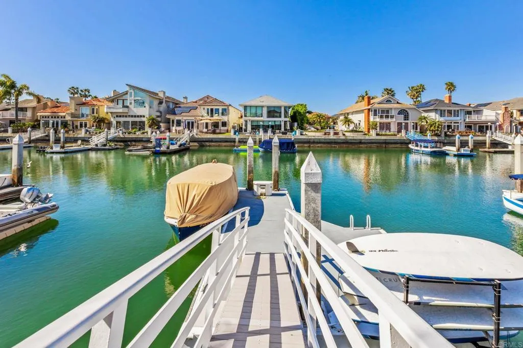 Welcome to an exceptional bayfront residence in the prestigious private community of Coronado Cays. This beautifully refreshed home offers 4 bedrooms, 4 bathrooms, and approximately 3,689 square feet of light-filled living space designed to capture stunning water views from nearly every room. The open and airy interior features expansive living areas that seamlessly connect to the waterfront setting. The spacious primary suite is a true retreat, showcasing sweeping bay vistas, sliding glass doors that welcome the coastal breeze, a generous walk-in closet with a dedicated purse closet, and a spa-inspired bath complete with a soaking tub and separate shower. The recently remodeled kitchen and bathrooms blend modern style with timeless coastal elegance, creating spaces that are both functional and sophisticated. Outdoor living is equally impressive, with a gated front courtyard and a tranquil backyard waterfront retreat featuring a fire pit overlooking the channel. Boating enthusiasts will appreciate the two private boat slips, accommodating vessels up to a 40-foot yacht, and providing direct access to the bay. Experience the effortless waterfront lifestyle of Coronado Cays, with convenient access to boating, nearby parks, sandy beaches, and local yacht clubs—all within one of Southern California’s most sought-after coastal communities.
