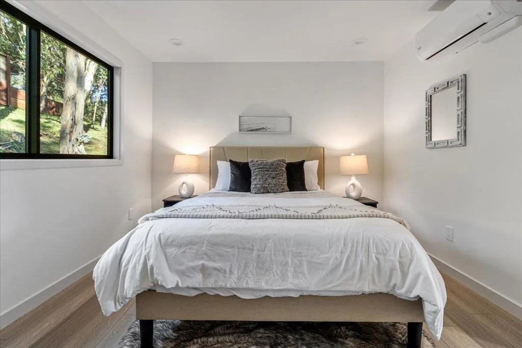 Modern hillside retreat on nearly 2 private acres in Aromas. Extensively rebuilt in 20252026 with approximately 90% new construction, this 4 bed, 3 bath home offers 2,362 sq ft of stylish living space surrounded by mature trees and scenic hillsides. The open-concept layout features a gourmet kitchen with quartz counters, oversized island, white shaker cabinetry, matte black hardware, and Samsung black stainless appliances including a wine fridge. Wall-to-wall sliding doors open to expansive multi-level Trex decks, creating seamless indoor-outdoor living with peaceful hillside views. The spacious primary suite includes vaulted ceilings with exposed beams and private deck access. Additional highlights include designer bathrooms, upstairs laundry with Samsung washer/dryer, Milgard windows, six-zone mini-split HVAC, gated entry, oversized two-car garage with glass door, dog run, and high-speed internet wiring. Just 5 minutes to Downtown Aromas and under 10 minutes to Highway 101.