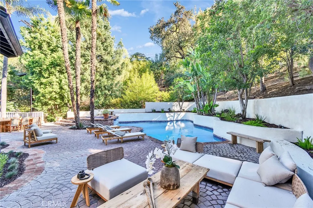 Welcome to Balboa Manor — Encino’s Hidden Jewel and the best price on this desired dead-end street. Discover Balboa Manor, an almost 1 acre luxury retreat and architectural masterpiece nestled within Rancho Estates, Encino’s most coveted enclave. Tucked away on an exclusive cul-de-sac lined with estates owned by Hollywood and sports elite, this residence redefines modern sophistication and California elegance. This completely renovated designer estate is elevated behind a private gated, the nearly 7,000-square-foot estate blends European charm with contemporary grandeur. Inside, natural light dances across soaring ceilings and wide-plank European oak floors, illuminating every detail of refined craftsmanship while enjoying the city and mountain views. The open-concept living spaces flow seamlessly from a designer great room with a statement fireplace to a formal dining area and a chef’s dream kitchen—featuring custom cabinetry, a quartz waterfall island, and professional-grade appliances. Your primary suite is a sanctuary of serenity, complete with a private terrace, boutique-style dressing room, and spa-inspired bath with a soaking tub and rain shower. Outside, a resort-style oasis awaits — a sparkling pool and spa framed by lush greenery and multiple lounge terraces for ultimate privacy and tranquility. Just minutes from Ventura Boulevard’s premier dining, luxury boutiques, and top-rated schools, this retreat embodies the pinnacle of the Encino luxury lifestyle — where sophistication meets sanctuary.