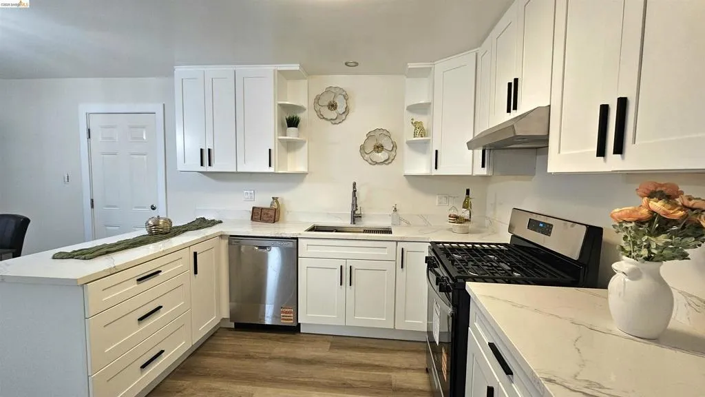 Newly renovated and equipped with solar, come see this single-story ranch home full of upgrades! The brand new kitchen features sleek quartz countertops & new appliances, accompanied by updated bathrooms, modern light fixtures and waterproof LVP flooring. With a partial finish garage and fresh paint inside and out, this property comes with a brand-new water heater, new garage door and a classic brick fireplace. With generous yard space on a desirable corner lot, the backyard includes an open pergola and orange trees, perfect for relaxing, gardening and entertaining. Ideally situated near shopping, BART, and I-4, this home is an excellent choice to fit your needs. Don't miss your opportunity to make this yours!