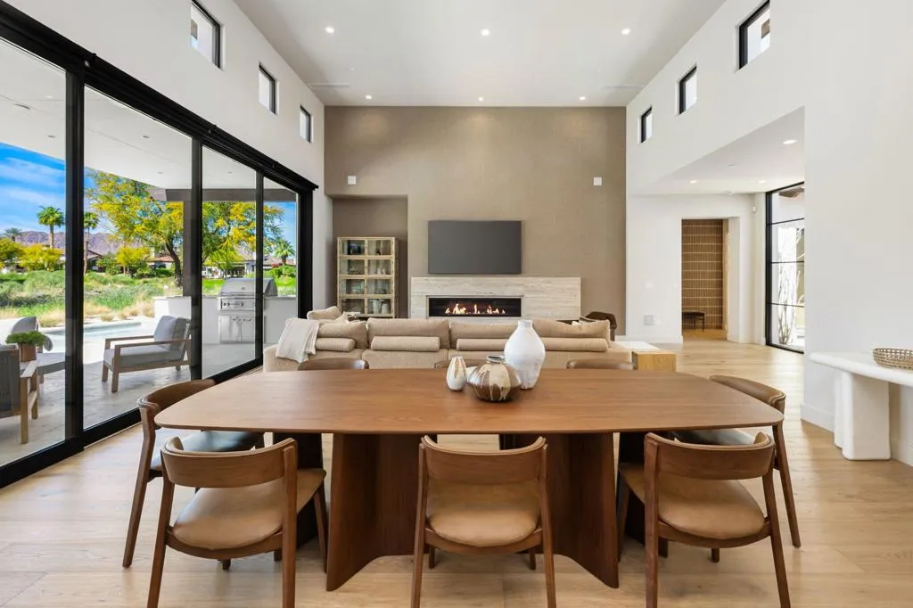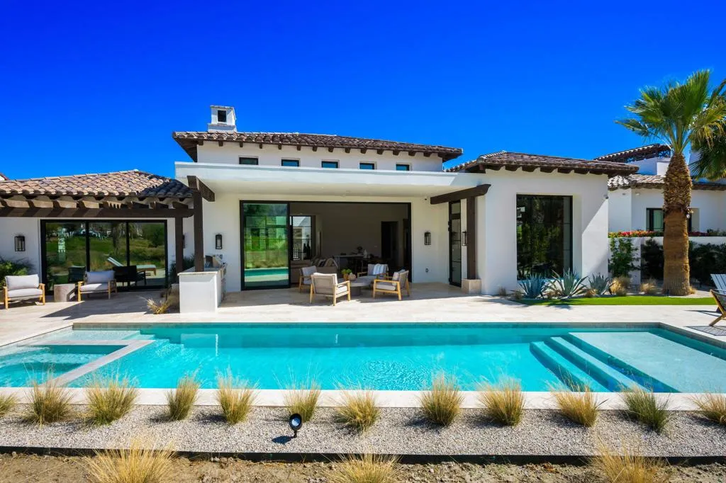 Experience refined desert living in this newly constructed 3-bedroom residence, including a private casita, ideally positioned on the 2nd hole of the renowned Tradition Golf Club. Showcasing a sophisticated transitional design with warm, earthy tones, this home blends modern architecture with the natural beauty of the surrounding mountains. The great room floor plan creates a seamless flow between the kitchen, dining, and living areas--perfect for both everyday living and entertaining. Expansive multi-slide glass panels open the great room to the outdoors, creating true indoor-outdoor living while framing breathtaking mountain and golf course views. The chef's kitchen features natural wood cabinetry, a large center island with seating, and high-end appliances, all anchored by clean lines and organic textures that complement the home's contemporary desert aesthetic. Step outside to your private resort-style backyard where a beautiful pool, fire feature lounge area, and built-in BBQ set the stage for unforgettable gatherings. The outdoor spaces overlook the lush fairway of the second hole, offering a serene backdrop of manicured greens and dramatic mountain vistas. Primary suite has cozy fireplace, stunning views and gorgeous bath with expansive shower and soaking tub. Families will appreciate the generous guest suite with two queen beds and spacious en-suite bath with dual vanities. The detached casita provides the perfect retreat for guests, offering privacy and comfort. Offered turnkey furnished, this exceptional residence allows you to move in and immediately enjoy the luxury lifestyle.