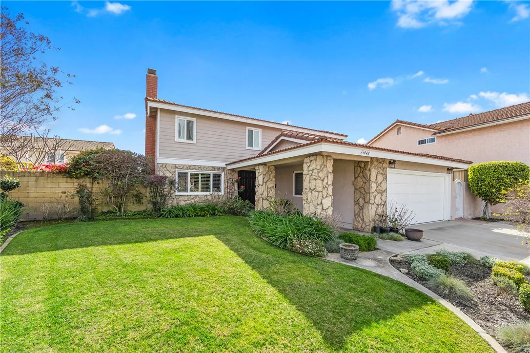 Nestled on a cul-de-sac, across the street from Saddleback park in the highly desired community of Cerritos, this former city of Cerritos citywide pride home award winner is truly a dream come true! Approaching the home the excitement starts with an oversized driveway that allows ample room to park multiple cars or an RV. Double entry doors lead to stunning hardwood floors that flow through this beautifully remodeled home. First impressions last with a step down formal living room complete with a custom stack stone fireplace, an oversized white mantel, and a fire and ice design. This space is ideal for gathering or relaxing. The great room style first floor offers 2 living areas and an open-concept dining room leading to the fully remodeled Chef's kitchen. This kitchen features granite countertops, cherry shaker cabinets and High End Luxury appliances including a Viking range with matching microwave and an oversized Subzero refrigerator. Thoughtfully designed and meticulously maintained this home has all the upgrades! A counter height peninsula leads into the second living area that boasts direct garage access. The convenience continues with a powder room downstairs for guests and a small office area that leads to the finished garage, which boasts custom cabinetry, epoxy floors, and built-in attic storage. Upstairs, the comfort continues with a massive primary suite that includes a fireplace, an ensuite bathroom and 2 closets, one of which is a walk-in. 3 more bedrooms and 1 more bathroom complete the upstairs. With smooth ceilings, recessed lighting, crown molding, dual pane white vinyl windows, custom shutters and newly replaced HVAC system within the last year, this home is truly one of a kind! A true entertainer's delight, the vast backyard is the perfect size and offers multiple seating areas including a fire pit, wrap-around alumawood patio cover cpmplete with ceiling fans and chase lounges and eating areas by the pool. The sparkling pool and spa has been resurfaced with pebble tec and has recently installed pool pump and gas heater. The home also has a pool solar heating system to allow the Attending award winning ABC school district, freeway close for the commute and shopping close for convenience, this home will not last!