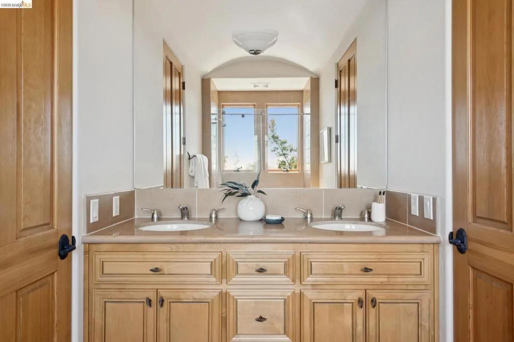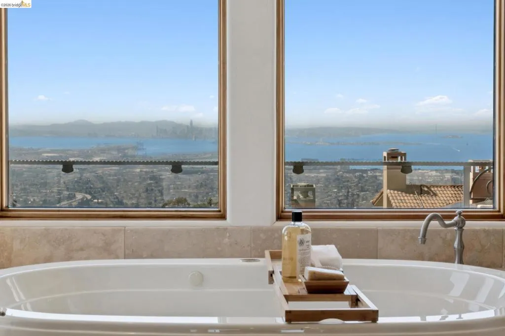 7101 Marlborough Terrace is a gated Modern Mediterranean estate showcasing panoramic San Francisco Bay and Golden Gate Bridge views. Impeccably constructed, the home features soaring ceilings and an open floor plan designed for seamless indoor-outdoor living, with outdoor gourmet kitchen, expansive terraces for sunset views, and multiple balconies. The ideal designed layout includes an exquisite primary suite with a room-sized closet and office, a private downstairs guest suite, and two additional main-level bedrooms. Additional amenities include, two oversized garages, abundant storage, central vacuum system, and a beautifully secluded hillside setting. Views: Downtown