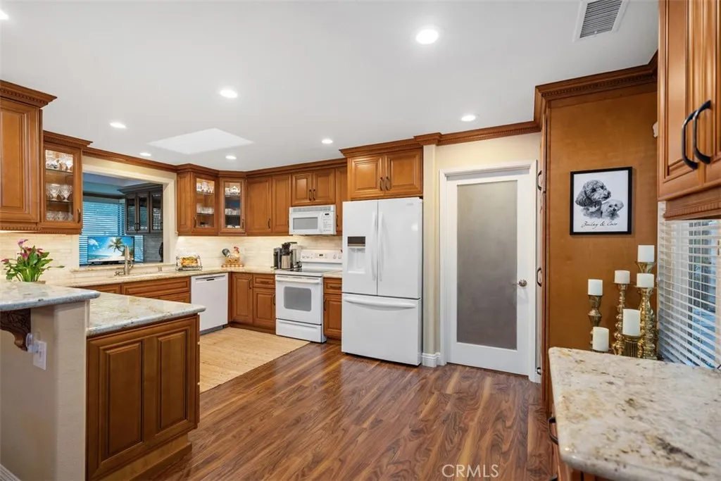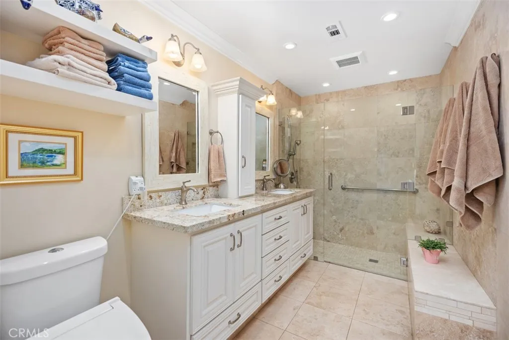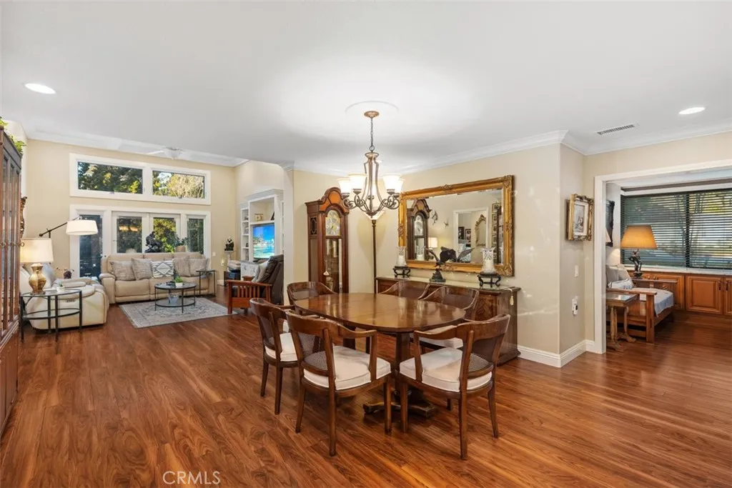 Nestled within the coveted Gate 11 community of Laguna Woods—Southern California’s premier 55+ enclave just minutes from the beaches of Laguna—this beautifully remodeled home offers refined living with thoughtful design and modern luxury. Boasting over 1,700 square feet plus a sunroom of more than 200 square feet, this residence features two spacious primary suites, each with fully remodeled bathrooms showcasing dual vanities, walk-in showers and custom closets. The open-concept kitchen is designed for entertaining, flowing seamlessly into a bright and airy living room accented by coffered ceilings and newly added transom windows that bathe the space in natural light. Throughout the home, exquisite details include laminated wood flooring, crown molding, recessed lighting, and upgraded doors and windows. The expansive sunroom—an inviting retreat with views of the neighborhood—is perfect for morning coffee, game nights, or quiet reading. A dedicated office space off the kitchen offers courtyard views and doubles as a flexible workspace. Outdoor spaces are equally impressive, with a beautifully tiled courtyard featuring a covered patio and BBQ island—ideal for dining al fresco—and a tiled back patio framed by a wrought iron fence overlooking a serene view. Accessibility has been subtly integrated with widened doorways, supporting comfortable aging in place. The finished two-car garage includes epoxy flooring, pull-down attic storage, laundry area with washer and dryer, and abundant cabinetry. Set within a secure and vibrant community with world-class amenities, this home blends comfort, elegance, and convenience— all within one of Southern California’s most desirable 55+ gated communities. The Village is near Laguna Beach and offers many great amenities such as: 27-hole golf course, tennis courts, separate pickle ball courts, five swimming pools, three fitness centers, RV storage, garden center and seven clubhouses including Clubhouse 4 offering amazing classes in art, ceramics, wood shop, jewelry-making, and sewing, and much more. Come and see your move-in ready home.