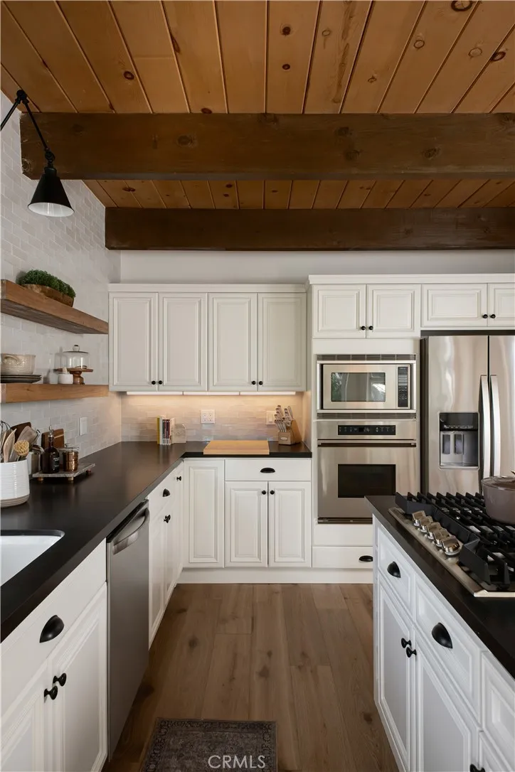 The Arrowhead Trail House With Potential Half a Double Dock Available. Beautifully reimagined and fully renovated mountain retreat with Lake Rights, ideally located along the coveted ALA trail with direct access to Lake Arrowhead. This stunning home offers the rare convenience of reaching the lake in under two minutes via a private bridge connecting the property to the lake trail, creating an effortless lake lifestyle. Inside, the home features 3 spacious bedrooms and 3 beautifully renovated bathrooms, thoughtfully redesigned with modern finishes and timeless mountain style. Nearly every element of the home has been updated, blending clean contemporary design with warm natural textures to create a welcoming and comfortable retreat. The main living spaces feature wide-plank flooring, custom millwork, and abundant natural light, while the remodeled kitchen offers stylish cabinetry, stone countertops, and stainless appliances—perfect for both everyday living and entertaining. Downstairs, a dedicated game and entertainment room provides the ultimate gathering space, complete with a pool table and game table, making it ideal for hosting friends and family after a day on the lake or the slopes. Outdoor living is equally impressive with two large entertaining decks surrounded by mature trees. The lower deck features a private spa and lounge area, creating the perfect place to relax under the stars. From here, a private bridge leads directly to the ALA lake trail, giving you easy access to the shoreline and nearby lakefront. Additional upgrades include air conditioning for year-round comfort, a rare and desirable feature in mountain homes. The property also includes full Lake Arrowhead Lake Rights, allowing owners to enjoy the private lake, beaches, and recreational amenities. For boating enthusiasts, a half a double dock located just two minutes away is also available for purchase separately, offering an incredible opportunity to secure immediate lake access. With its prime trail-side location, extensive renovations, multiple outdoor living spaces, and unbeatable access to the lake, this home offers the perfect balance of luxury, recreation, and mountain tranquility.