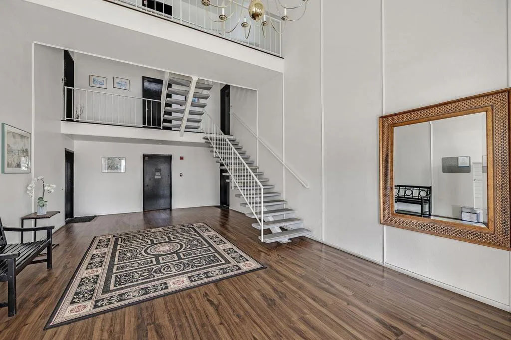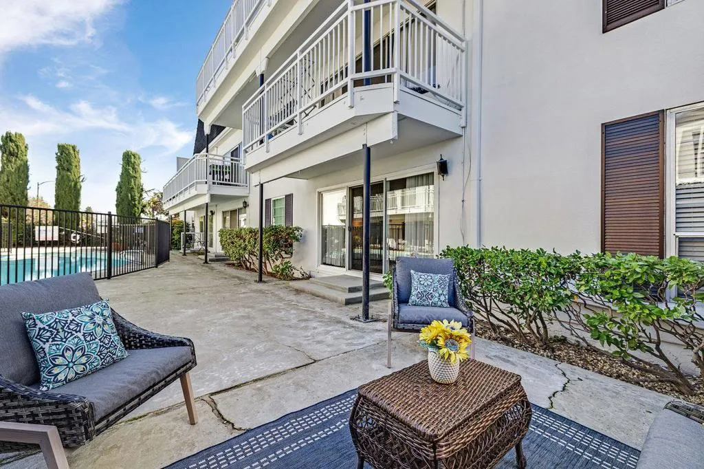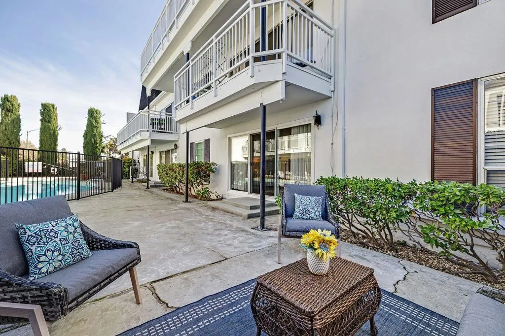 Tastefully remodeled condo in the heart of the Silicon Valley. Unit located on the first floor of a secure building. Open and spacious floor plan. Newly installed floors: luxury vinyl planks and LVP waterproof. 2 bedrooms with plenty of storage and 2 full baths.Quartz Calacatta Aria used for the shower and tub walls.kitchen with stainless steel appliances and quartz Calacatta Gold countertops. Primary bedroom with its own bathroom. Large glass doors from the living room lead to the patio where a sitting area and a pool are located.Fireplace in the Living room. Elevator is located next to unit, it leads to the washer and dryer room in the garage as well as to the assigned covered parking and to the storage room .Tennis court. Close to schools, dining, shopping, Castro street and to public transportation.