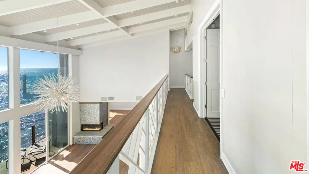 Located within the prestigious guard-gated enclave of Malibu Cove Colony, this beautifully updated oceanfront residence offers sweeping panoramic views of the Pacific and an exceptional opportunity to own along one of Malibu's most desirable stretches of coastline. Positioned directly on the sand, the home captures breathtaking ocean vistas from nearly every room.The interior is defined by soaring vaulted ceilings and dramatic walls of glass that frame the sparkling horizon and fill the home with natural light. The expansive living room opens seamlessly to a spacious beachfront deck, creating an effortless indoor-outdoor flow ideal for entertaining or relaxing while enjoying the sound of the waves.A thoughtfully designed kitchen features custom cabinetry, stone countertops, premium appliances, and a large center island that connects naturally to the main living areas and ocean views beyond.Upstairs, the oceanfront primary suite offers a serene retreat with vaulted ceilings, stunning water views, and access to the deck. Additional bedrooms provide comfortable accommodations for guests while maintaining the home's bright coastal aesthetic. A spa-style bathroom with soaking tub, glass shower, and elegant finishes adds to the home's sense of relaxation.Outdoor living spaces include an expansive beachfront deck ideal for dining and lounging above the sand, as well as a private courtyard with spa providing a peaceful setting away from the ocean breeze.Set within Malibu Cove Colony, one of Malibu's most coveted gated beach communities, the property offers privacy and security just moments from world-class dining, shopping, and the Malibu Country Mart.A rare opportunity to experience quintessential Malibu beachfront living.