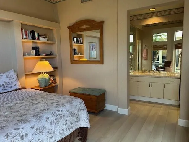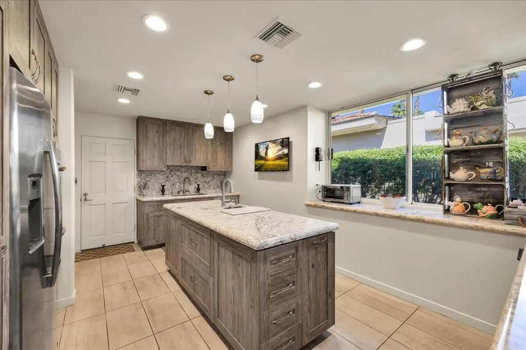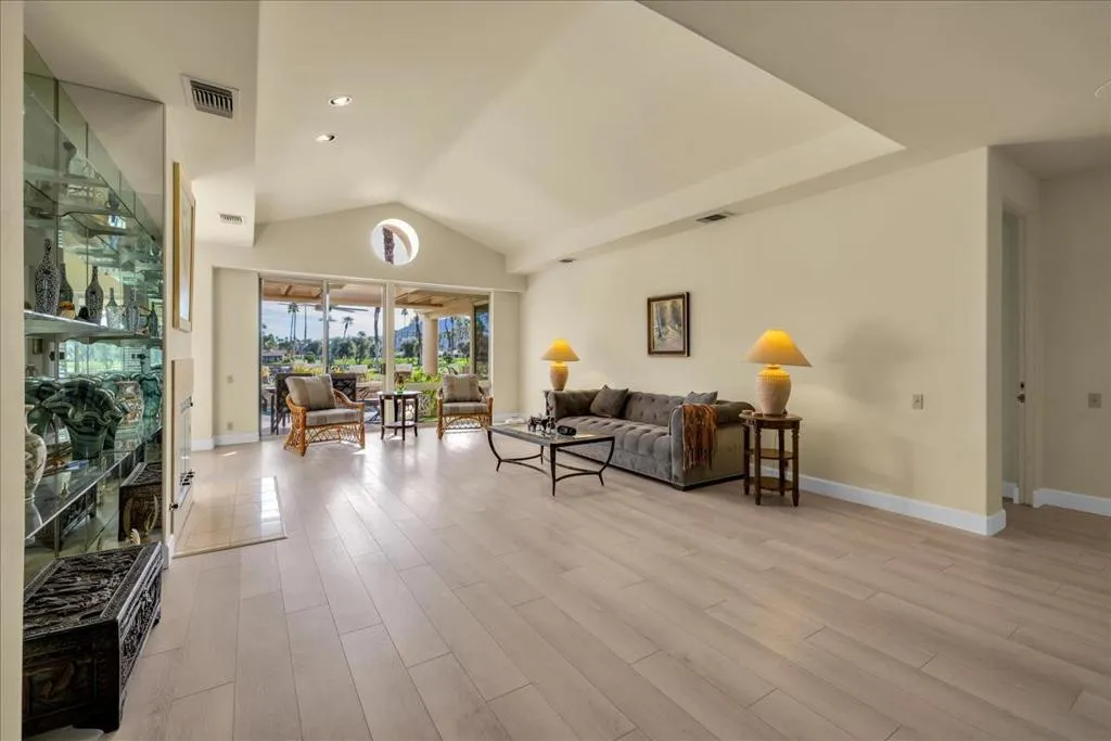 Welcome to your dream home located in the prestigious Desert Horizons Country Club in the very heart of Indian Wells. Close to shopping and performance venues in the Coachella Valley VIP events, such as the BNP Paribis Open, the Coachella Festival, Stagecoach Festival and much more! Beautiful and inspiring 270 degree views of mountains, a serene lake with fountain, and perfectly manicured fairways! This exquisite home boasts 2 bedrooms and 2 baths in the main house. Additionally, a detached casita or a Junior ADU with a lovely spacious bedroom and ensuite bathroom, perfect for accommodating guests or a serene home office space. Solar is paid for and recently added new luxury vinyl plank flooring. throughout the home. Kitchen is newly renovated, a haven for the food enthusiasts! Beautiful and spacious quartz counters, storage sliders for easy retrieving of food staples, new double ovens, dishwasher. The family room includes a bar with views out to the beautiful pool with misting system, plumbed pool cooling system, and awesome views of the lake, mountains and 18th green of the golf course which provide lovely entertaining areas. The soaring ceilings in the living room help flood the space with natural light. The primary suite serves as a private sanctuary with an ensuite bathroom that includes a soaking tub and separate walk-in shower and a huge walkin closet. The second bedroom is spacious with a walkin closet and ensuite bath with a walkin shower. The garage is spacious and includes a golf cart space. plus 3 Tesla Batteries, and charging station. Desert Horizons includes many pools enjoyed by all including water volleyball players and their many fans, tennis and pickle ball courts, a state-of-the art fitness facility, bocce ball games which includes an outdoor bar for the players and their friends, stunning club dining facilities which includes five star meals,top shelf wine selections for diners, fun Friday night Happy Hours and more!,