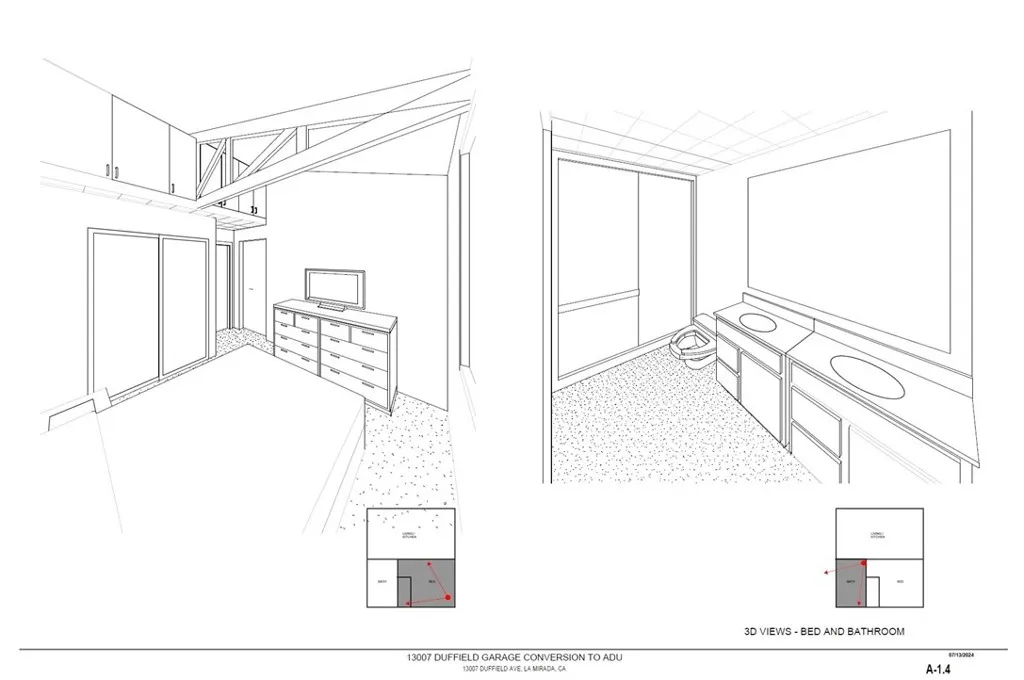 Fully renovated 4-bedroom, 2-bathroom La Mirada home with 1,112 sq. ft. of living space on a 5,072 sq. ft. lot and a detached 2-car garage with Plenty of parking in the large drive way can park many cars. Every room features Mini Split AC/Heating for year-round comfort. The living room boasts recessed lighting, and modern wood vinyl plank flooring. The remodeled kitchen includes quartz countertops, white shaker cabinets, and stainless steel appliances. First-floor bathroom has a glass shower door, second-floor bathroom features a smart toilet, and all closets have been updated. Step outside to a backyard patio, and enjoy a garage with hobbies space. Approved ADU plans allow a 409 sq. ft. garage conversion to 1 bedroom 1 bathroom with Kitchen & livingroom you can start a ADU after close of escrow no waiting save you time and Money this is the new home owners dream property to add instant value since all ADU plans is approved & paid. Architecture, Title 24 & Structual engineering has beem fully paid in full only permit fees apply. Additional upgrades: 28-year cool roof, energy-efficient dual-pane windows, PEX plumbing, ABS drains, upgraded 125-amp electrical panel, Tesla Charger and ceiling fans & Bosch Mini split in every bedroom & Living room Bathroom sink & smart Toilet. Prime location near top schools, parks, shopping, and BIOLA University. Move-in ready and full of modern style! Welcome Home