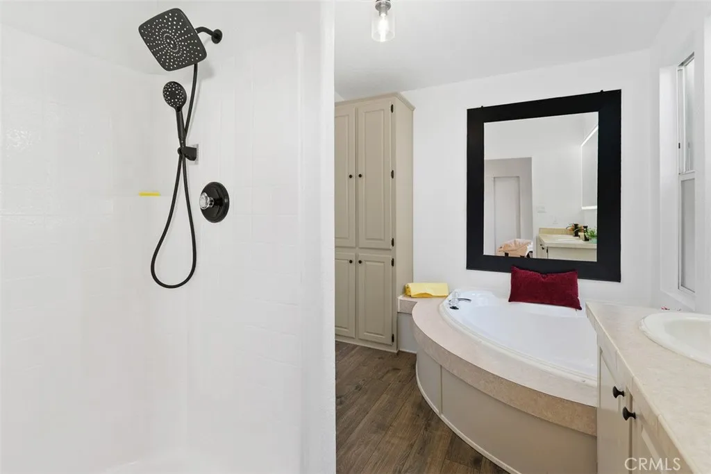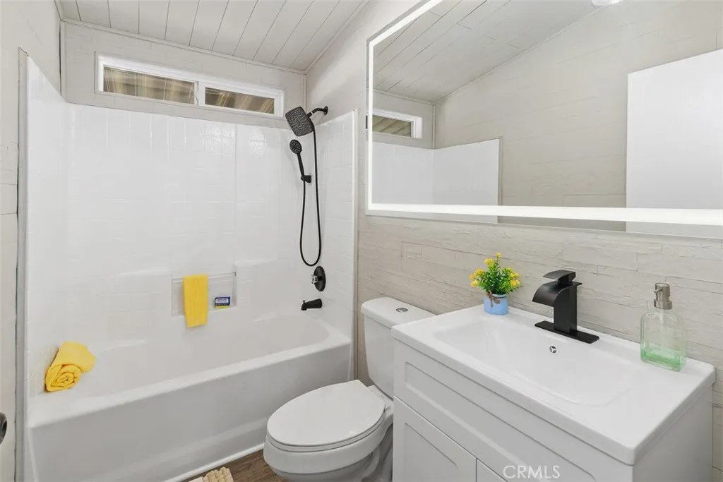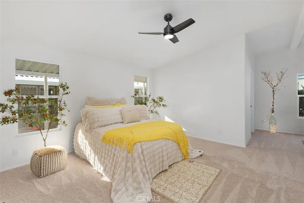 Beautiful 3-bedroom 2 bath mobile home located in the exclusive Rancho Ontario. This home's floorplan boasts the main suite in the back of the home and the guest bedrooms in the front of the home great for entertaining guests. The main suite offers a newly glazed tub and stand-up shower. The home offers a semi-open concept from the kitchen to the om to the dining room. The driveway can fit up to 3 small vehicles and also offers a big shed. The home offers an open porch. The lot has a mature orange, peach and lemon tree. The home offers new matching ceiling fans in all bedrooms. Updated electrical sockets and switches. The home is being offered with all of the new furniture featured in the photos. Newly renovated amenities await you offering a heated pool and spa opened year-round, a hall to host any event, our clubhouse offers a billiards room, card table room, a fitness room as well as a gym and a lounge area to just sit and relax. The Park also offers an active area with two pickleball courts, bocce ball and we didn't forget about your fur babies, two dog parks. Don't miss out on the opportunity to call this beauty your home.