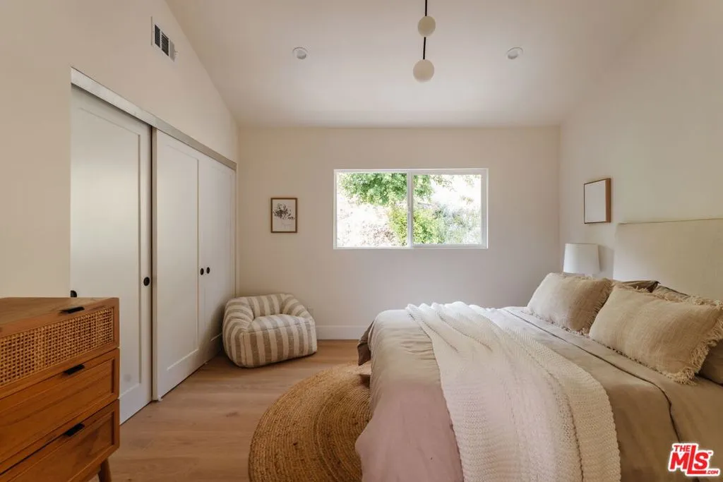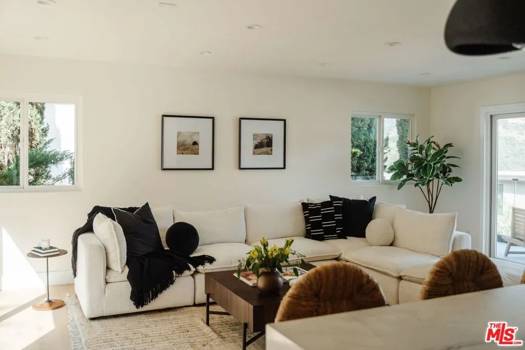 Welcome to 2339 Jupiter Drive, a beautifully reimagined multi-level residence offering sweeping hillside to Downtown Los Angeles views in the prestigious Mount Olympus enclave of the Hollywood Hills. Set on a rare wide, flat street with abundant parking, this fully renovated home blends elevated design, thoughtful upgrades, and effortless indoor-outdoor living.The refreshed exterior features smooth stucco accented by fire-resistant metal wood-look siding, creating a clean, modern faade. A dramatic pivoting frosted tempered-glass front door opens to light-filled interiors showcasing a marble entry, engineered white oak floors, and custom glass railings. The redesigned staircase, illuminated with built-in LED step lighting and crowned by a skylight above, creates a striking architectural centerpiece.The main living areas flow seamlessly to front-facing balconies where rolling hills and the DTLA skyline provide a breathtaking backdrop from sunrise to sunset. A gas fireplace with ceramic logs anchors the living room, adding warmth and ambiance.The kitchen has been completely reimagined with oak shaker cabinetry, ocean-grey quartz countertops, and a spacious eat-in peninsula ideal for gathering and entertaining. A stylish wet wine bar adds a sophisticated touch, complemented by a full suite of stainless appliances including a new range with hood, refrigerator, dishwasher, built-in microwave, and wine fridge.Upstairs, 3 bedrooms and 3 bathrooms have been fully remodeled with modern finishes, LED fogless mirrors, and a cohesive, spa-like aesthetic. The principal suite boasts vaulted ceilings, a walk-in-closet, ensuite bathroom with soaking tub, washlet toilet, and a private balcony that overlooks the city lights. Extensive system upgrades include a new all-electric furnace, new AC compressor, updated 220 electrical wiring, integrated CCCT wiring for cameras, speakers, and security, plus foundation waterproofing with Drylock-sealed retaining walls. The renovation is completed by new landscaping, gutters and downspouts, and a new garage door with smart controller.Located just moments from the Sunset Strip, West Hollywood, and Studio City, this turnkey Mount Olympus residence delivers iconic Hollywood Hills living with modern comfort and design. Welcome home!