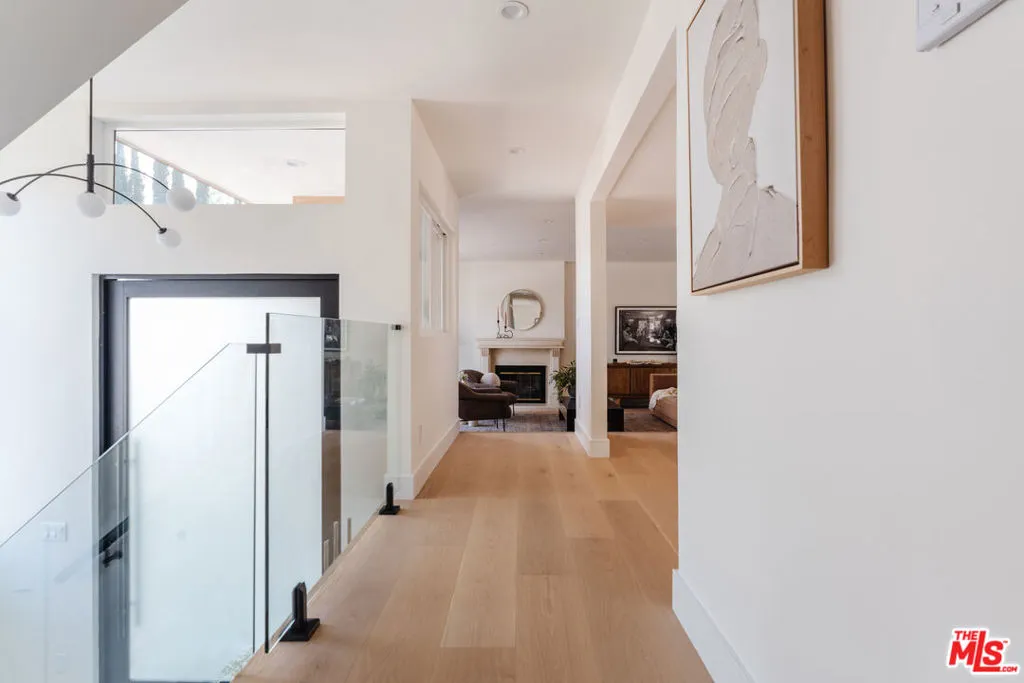 Welcome to 2339 Jupiter Drive, a beautifully reimagined multi-level residence offering hillside views in the prestigious Mount Olympus enclave of the Hollywood Hills. Set on a wide street with abundant parking, this fully renovated home blends elevated design, thoughtful upgrades, and effortless indoor-outdoor living. The exterior features smooth stucco accented by fire-resistant metal wood-look siding, creating a clean, modern facade. Enter through the dramatic pivoting frosted tempered-glass front door to light-filled foyer with marble entry, engineered white oak floors, and custom glass railings. The redesigned staircase, illuminated with built-in LED step lighting and creates a striking architectural centerpiece. The main living areas flow seamlessly to front-facing balconies where views of rolling hills provide a breathtaking backdrop from sunrise to sunset. A gas fireplace with ceramic logs anchors the living room, adding warmth and ambiance next to the formal dining room. The reimagined kitchen features oak shaker cabinetry, ocean-grey quartz countertops, a stylish wet bar, a spacious eat-in peninsula, complemented by a full suite of stainless appliances. Upstairs, 4 bedrooms and 3 bathrooms have been fully remodeled with modern finishes, LED fogless mirrors, and a cohesive, spa-like aesthetic. The principal suite boasts vaulted ceilings, a walk-in-closet, ensuite bathroom with soaking tub, washlet toilet, and a private balcony that overlooks the city lights. Extensive system upgrades include a new all-electric furnace, new AC compressor, updated 220 electrical wiring, integrated CCCT wiring for cameras, speakers, and security. Located just moments from the Sunset Strip, West Hollywood, and Studio City, this turnkey Mount Olympus residence delivers iconic Hollywood Hills living with modern comfort and design. Welcome home!