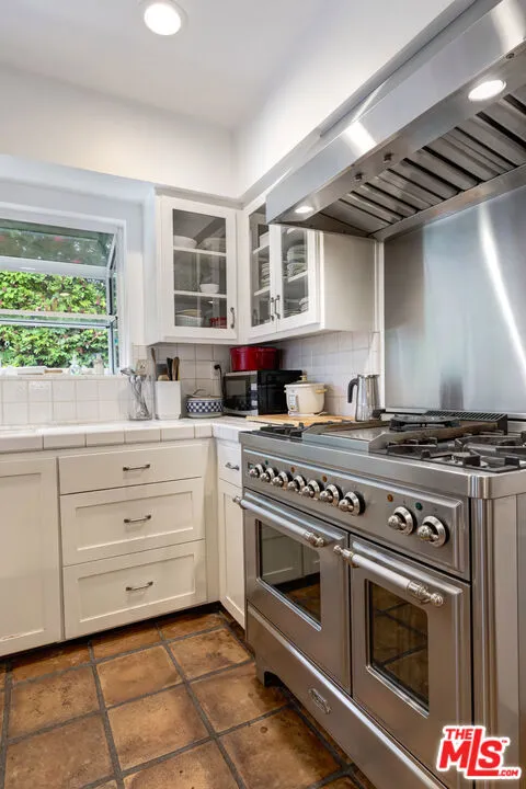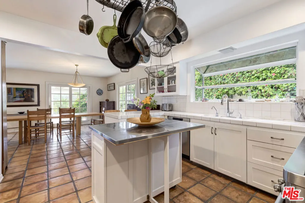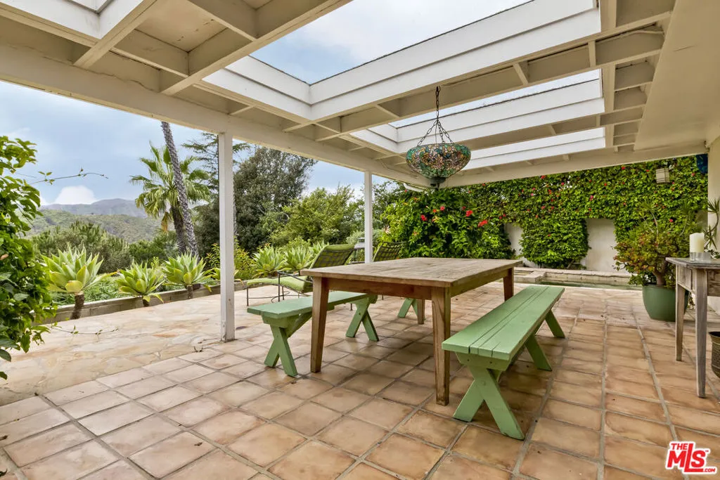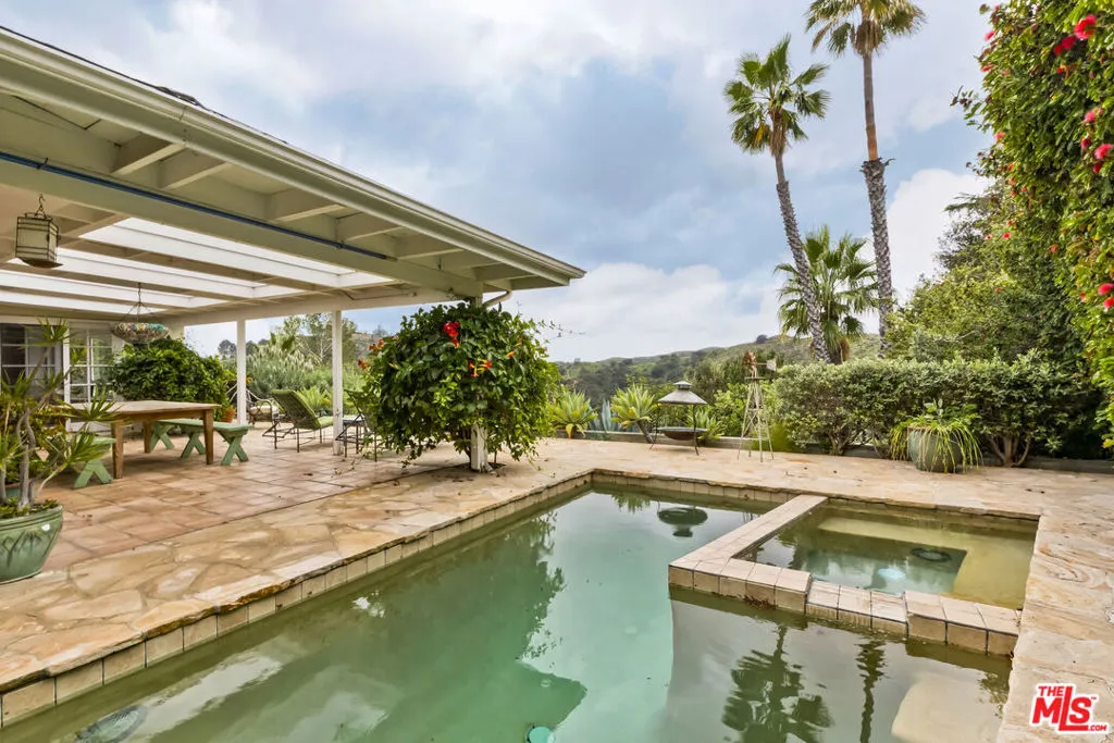 Welcome home to this enchanting canyon-view cottage, nestled among lush gardens and designed for inspired indoor-outdoor living. Offered furnished, this private retreat is perfect for effortless entertaining or creative escapes in your own dedicated music studio. French doors open from the main living spaces to a covered patio and sparkling pool, seamlessly blending interior comfort with outdoor beauty.The thoughtfully designed kitchen is a true cook's delight, while the inviting living room features a cozy wood-burning fireplace ideal for intimate evenings at home. Rich Saltillo tile floors run throughout, adding warmth and character to all three bedrooms, three bathrooms, and a stunning private office.The serene primary suite offers a spa-like bath complete with a freestanding soaking tub and walk-in shower. Abundant built-in storage enhances every room with both style and functionality.Spacious enough to host friends and family, yet intimate enough for quiet nights by the fire this canyon sanctuary is a rare and special offering.