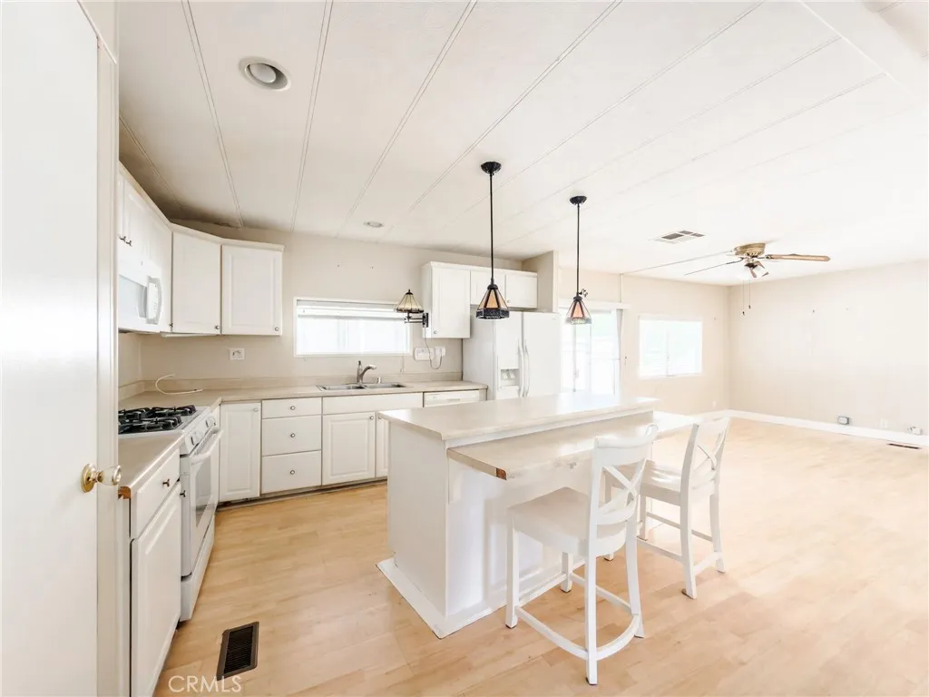 Welcome to this move-in ready 2-bedroom, 2-bathroom mobile home located in one of Lake Forest’s most desirable 55+ communities. This home offers 1,440 square feet of living space, is perfectly positioned overlooking the golf course, and features a light, bright, and airy open floor plan with an oversized living room open to the dining area. The updated kitchen includes a center island, pantry, and ample cabinetry, making it both functional and inviting. A second living area/TV room connected to the kitchen provides direct access to the enclosed patio. The indoor laundry area includes a washer and dryer. The spacious primary bedroom boasts two closets along with built-in drawers and cabinetry for additional storage. The en-suite bathroom features an oversized vanity and a walk-in shower. The second bedroom is perfect for guests or a home office, offering generous closet space and direct access to a full bathroom, making it ideal for visitors. The enclosed patio provides a comfortable outdoor living space, perfect for relaxing or entertaining. This home also features a small backyard with beautiful golf course views. The El Toro Mobile Home Estates is a well-maintained 55+ community that offers a pool, spa/hot tub, club house, billiards, outdoor barbeque area, fitness classes, social gatherings and planned events.