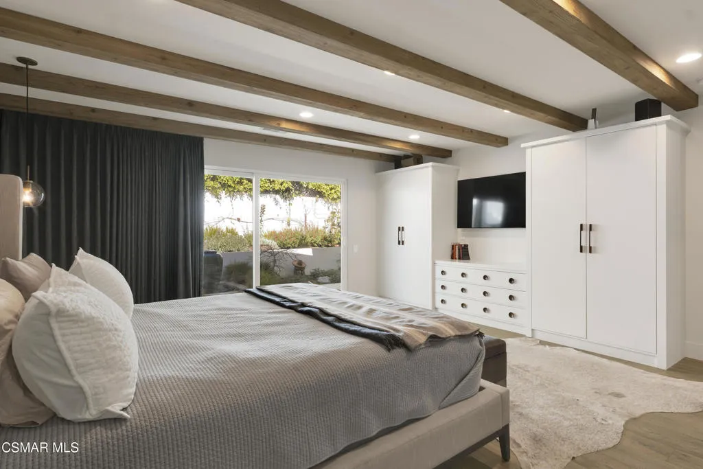 Stunning one story Mid- century completely remodeled, corner single story home! You are welcomed into an elegant, light and bright living room with high ceilings & recessed lighting. Beautifully upgraded kitchen with a new island that features stone/waterfall top and walnut components and new cabinets throughout. All the bathrooms have been beautifully remodeled with custom vanities, toto toilets, new lighting and more. All of the interior doors have been upgraded to new solid core walnut with new hardware. This home also features, new A/C ducting, new roof, copper plumbing, beautiful wood floors, a new tankless water heater, and a nicely manicured backyard. A brand new custom pool with an auto-recessed built in cover was just completed. Enjoy the lovely outdoors with new sandstone paver decking, a firepit and sitting area and a built in bbq unit. Located south of the boulevard and minutes to the 'Commons' in Calabasas. Less than 15 miles from the beach and close to great schools. Great location! No HOA fees! Don't let this one go!