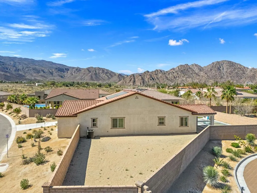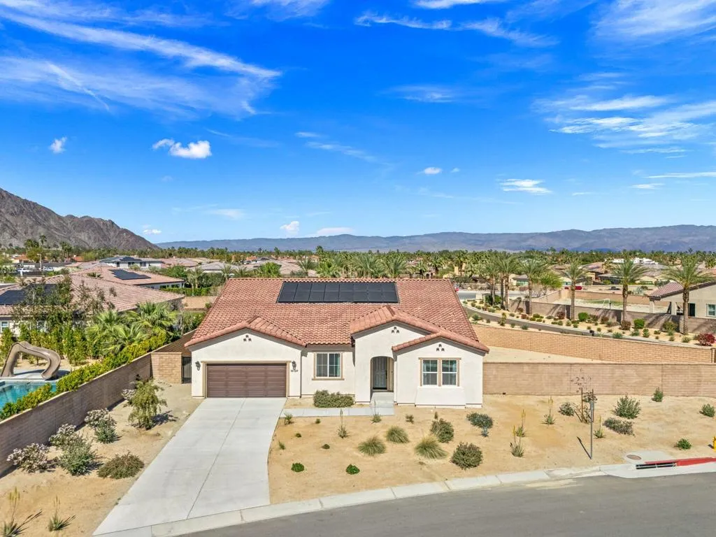Desert luxury meets modern design in this exceptional home located in the gated community of Cantera at Coral Mountain. Perfectly positioned on a massive premium corner lot, this newer 4-bedroom, 3-bath residence offers elevated desert living with thoughtful upgrades, striking finishes, and breathtaking surroundings. Step inside to a bright and open floorplan designed for both everyday comfort and effortless entertaining. The spacious great room flows seamlessly into a stunning chef's kitchen featuring upgraded stainless steel KitchenAid appliances, quartz countertops, sleek finishes, and a massive walk-in pantry that provides incredible storage and functionality. Dual Master suites provide versatility and convenience. Sliding glass doors and large windows flood the home with natural light while framing panoramic mountain views that surround the property and create a truly spectacular backdrop. Outside, the home transforms into a private resort-style retreat. Enjoy a sparkling pebble tech pool and spa, gather around the firepit under the desert stars, or host unforgettable evenings at the fully equipped outdoor kitchen. The oversized corner lot offers exceptional privacy along with ample space for future expansion, additional lounge areas, or custom outdoor amenities.Adding to the home's appeal is a fully owned solar system designed for improved energy efficiency and long-term savings, allowing you to enjoy luxury living with reduced energy costs plus a tandem 3- car garage for added storage and convenience as well as smart home wiring throughout. Located within the desirable community of Cantera at Coral Mountain with modest HOA dues, just minutes from the charm, dining, and boutique shopping of Old Town La Quinta, several luxury golf courses including Coral mountain golf club, Andalusia golf club, Silver Rock, PGA West and many more, also nearby is the Rancho Del Sol Equestrian center for horse back riding enthusiasts. Surrounded by the natural beauty of the Santa Rosa Mountains, this property delivers the perfect blend of lifestyle, location, and modern desert sophistication. Opportunities like this in Cantera at Coral Mountain are rare--don't miss your chance to own one of the community's most desirable homes.