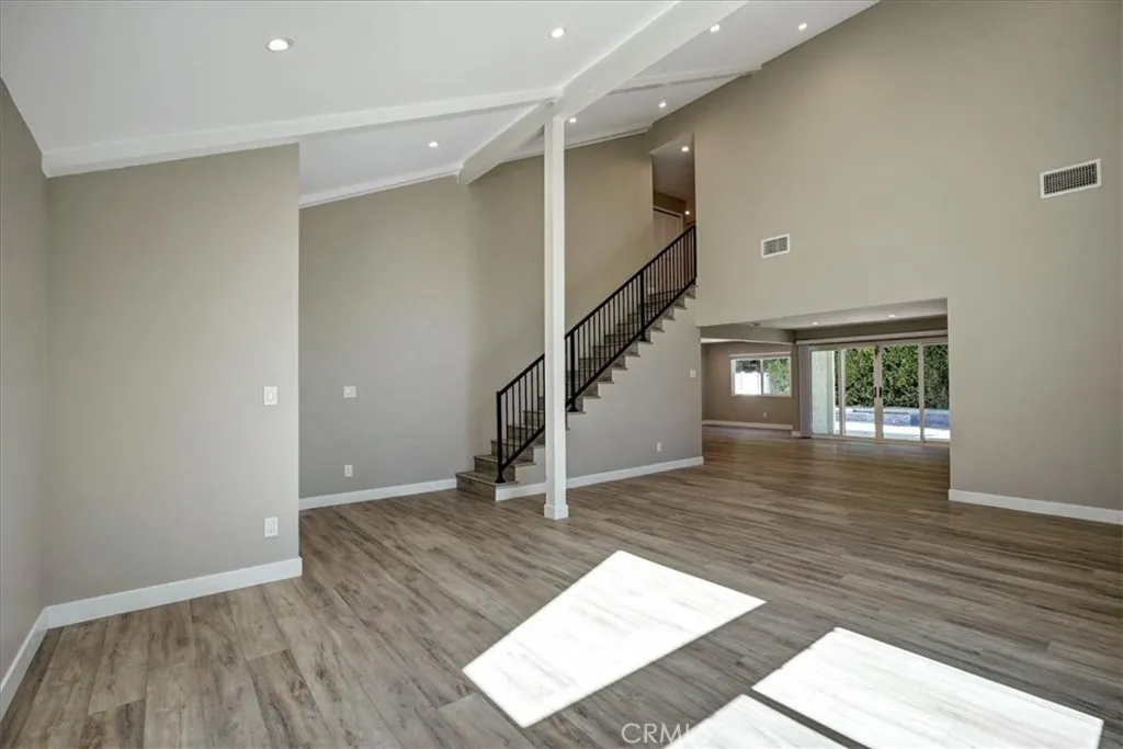 Sherman Oak beautiful and sophisticated extensively remodeled contemporary home with pool and spa in desirable Chandler Estates. 4BR, 2.5BA, approx. 2,517sf with exquisite finishes and superb quality. Dramatic spacious living room with soaring vaulted beamed ceilings and an open floor plan with an infusion of natural light. Elegant family room with inviting fireplace opens to formal dining room leading to a brilliant large kitchen. FR with sliders to a covered patio and remodeled large heated swimming pool and spa with newer equipment and decking ideal for Al Fresco dining, relaxing or entertaining in a private setting. Large sensational chef’s kitchen with quartz counters, Bosch stainless steel appliances with double door refrigerator, 6-burner gas range, and plentiful cabinets. A powder room and laundry room with washer and dryer complete the lower level. Upstairs with 4 bedrooms and 2 bathrooms including the massive primary bedroom with walk-in closet and luxurious bathroom with double sinks, separate shower and tub. Stunning remodeled hallway bathroom with double sinks and shower over tub. The 3 secondary bedrooms are well proportioned. Residence boasts throughout designer gray tones wide plank laminate flooring and showcases recessed lighting and fresh interior new paint. 2 car attached garage with direct access and expanded driveway, double pane windows, nest thermostat, newer water heater and central air and heat. Newer “Cool” roof for additional energy savings and an EV charger. Weekly gardener and pool services included. Enjoy a contemporary lifestyle with sublime comfort and a modern design. Close to famed shops and restaurants on Ventura Blvd, Trader Joes, shopping, freeways, studios and the Westside. Prepare to be impressed! A winner!