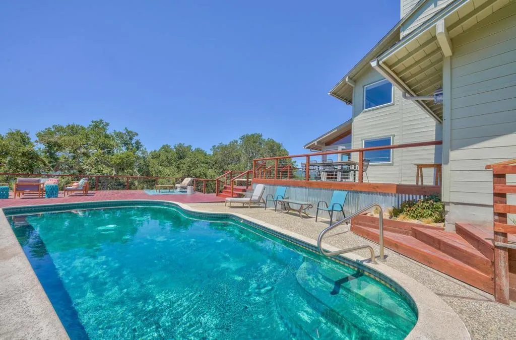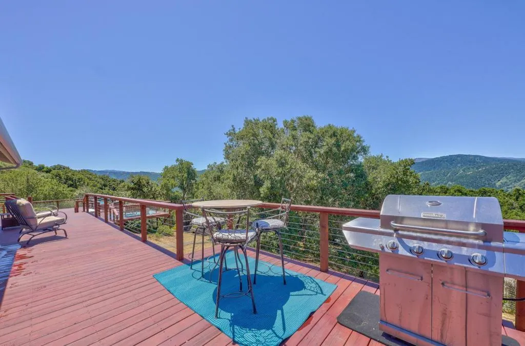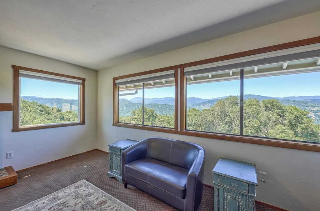 At 1100 FT elevation, nestled among 250 year old oak trees at the end of a 450 FT private driveway this country barn style two-story home on 2.35 acres, with a black bottom pool is surrounded by a 3000+ SF redwood deck ready for entertaining. The property is in the highly rated Carmel Unified School District. The spacious sunroom has Santa Lucia mountain vistas leading to Big Sur. The primary bedroom suite, including bathroom and laundry room, are on the first floor and newly remodeled with radiant heat. Two upstairs bedrooms share a remodeled bathroom also with radiant heat. The larger of the upstairs bedrooms has a fireplace and both have stunning Santa Lucia mountain views. The living room has a large slate fireplace and opens to the dining room. All electric. New 40 Year roof. New flooring downstairs and new carpet upstairs. 50A sub panel in 20' X 23' garage for EV circuit. Detached 280 SF workshop/studio with 50A sub panel. This is the perfect home for those that treasure their privacy and quiet and have family gatherings celebrating life.