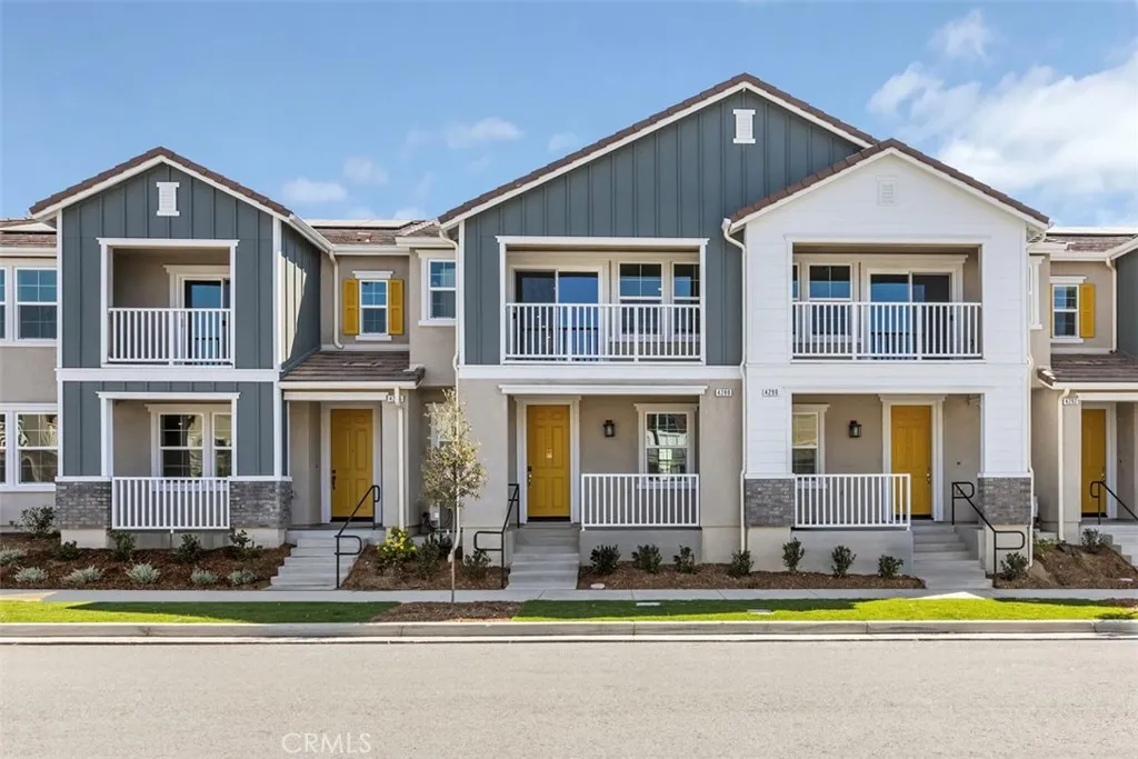 Belmont is a beautiful new condo resort-style community in the newer area of Ontario Ranch. This floor plan offers 2,051 sq/ft of open floor plan spread across 2 floors. Take note of the expansive 9-ft ceilings bringing a nice vaulted feel at the first floor when you walk in. This open floor plan features the living, dining and kitchen downstairs. The stylish kitchen features white raised panel door cabinets, large kitchen island, walk in pantry, dining area, upgraded quartz counter tops and luxury vinyl plank flooring throughout the downstairs. Our homes offer brand-new Whirlpool® stainless steel appliances including a slide in gas stove, dishwasher and microwave. Additionally, the powder room and laundry room are downstairs. The upstairs leads right into an open loft the family can enjoy and two secondary bedrooms nearby. Those two bedrooms share a large hallway bathroom that has a tub/shower combination. The spacious primary bedroom is a short walk away and has a large walk-in closet, adjoining bath with cultured marble counter tops, dual sinks with and walk-in shower. There is also a private balcony from the primary bedroom for you to relax at after a long day at the office. Each home is built with uncompromising energy efficiency in mind such as a tankless water heater, smart thermostat, dual-pane low E glass windows and so much more to help ensure uninterrupted comfort all year long. All that is complemented by a solar energy system as well to maximize savings(lease or purchase required). Community amenities include two parks, pool and spa, dog park, and pickle ball courts. Easy access to the I-15, I-10, and 60 Freeways nearby. You are also close to shopping at Costco®, 99 Ranch Market, Cloverdale Marketplace and Eastvale Gateway. Ontario International Airport and Ontario Mills Mall are also just a short drive away. Belmont is conveniently located just 2.5 miles away from the brand new Park View elementary school. Photo is a rendering of the model. can purchase or lease the solar!