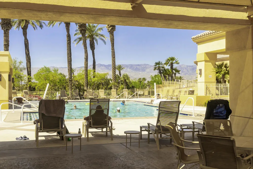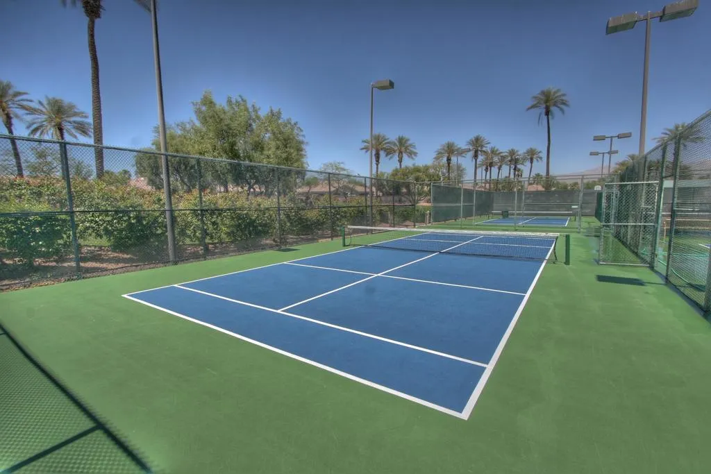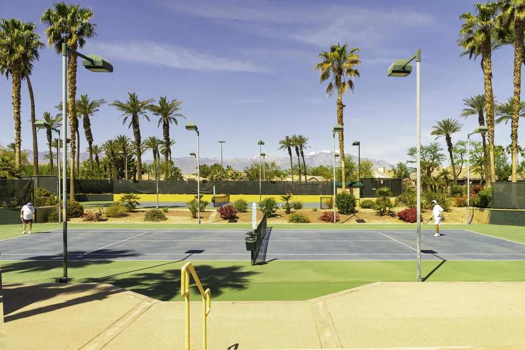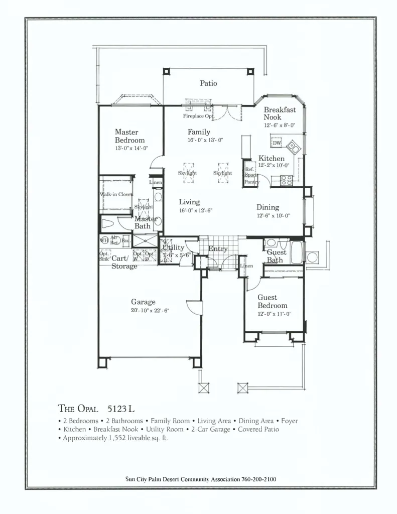 Welcome to Sun City Palm Desert - resort-style living in a vibrant 55+ Del Webb community! This beautifully maintained and TURNKEY-FURNISHED Opal floor plan (small exclusions list) offers 2 bedrooms, 2 baths, and an open layout with 10-ft ceilings, skylights, and great bedroom separation for privacy. The updated kitchen with Corian counters and tile backsplash opens to a spacious great room and breakfast nook--ideal for entertaining. A formal dining area adds flexibility, while the large covered patio offers a perfect outdoor retreat. The primary suite features a BAY WINDOW, walk-in closet, spacious bath, and skylight for abundant natural light. Additional highlights include ceiling fans, indoor laundry, ample storage, and a 2-car garage with extra space for workbench and storage or golf cart space. Low HOA covers exterior maintenance, cable TV, security, pest control, and more. Enjoy access to clubhouses, fitness centers, restaurants, two 18-hole golf courses, and endless social clubs. Perfect for seasonal or full-time desert living!