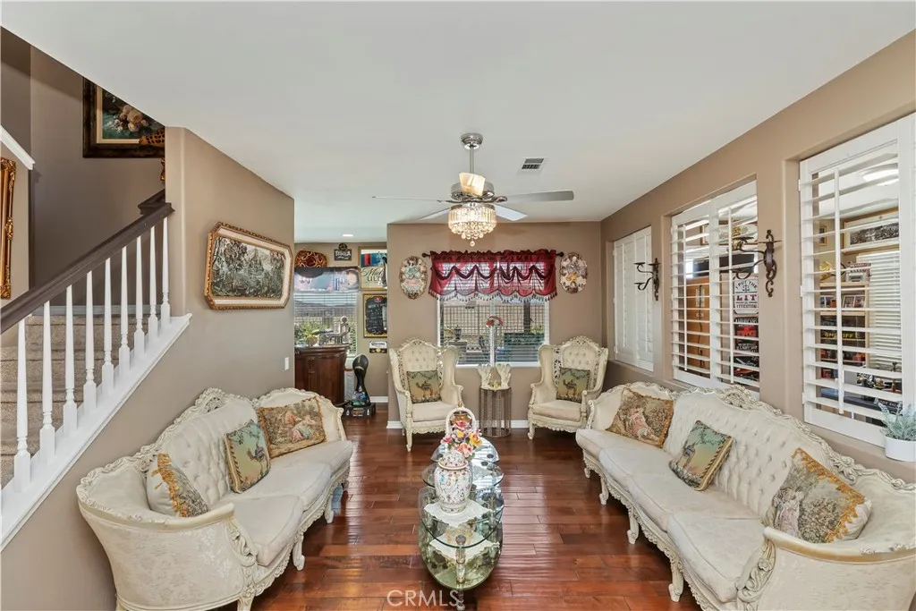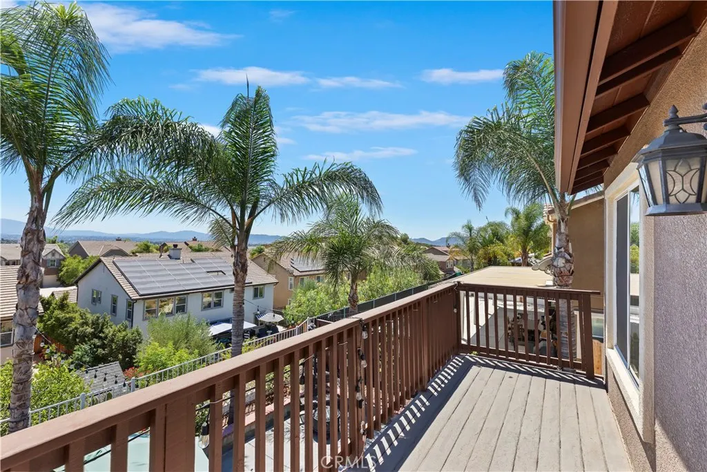 Located in desirable Murrieta Oaks, this VIEW home has it all! Home features 5 bedrooms (main floor bedroom currently configured as an office) and a main floor full bathroom. FULL interior & exterior paint refresh in 2023. Make your entrance through the gated courtyard leading into the spacious home. Separate Dining Room and extended Living Room with a nook in the back where the bar area is. Large kitchen has countertop bar seating, kitchen island seating AND a breakfast nook that is light and bright with a sliding door leading into the front courtyard. Kitchen features granite counters, new custom lighting fixtures and SS Appliances. Family Room has a built-in entertainment center, wood or gas fireplace & a sliding door to the backyard. Upstairs has 4 bedrooms, 2 baths and a large Loft with a balcony to look out onto the hillside views from the front of the home. Oversized Primary Bedroom has a balcony with french doors to take in the stunning panoramic Valley Views. Luxurious Primary Bathroom has dual walk-in closets, separate shower & soaking tub AND an Extra retreat behind the Primary Bathroom. The Backyard was MADE for entertaining with a barbecue island with 2 grills and a mini fridge to take advantage of the views!!! RV Gate on the side of home to bring ALL of your toys! No HOA! RV space behind the gate is 7' x 50'. Don't have an RV or toys to park? Income potential! Great Murrieta Schools including Antelope Hills Elementary within walking distance. Close to Home Depot, Target and the Murrieta Costco shopping center. Seller motivated!