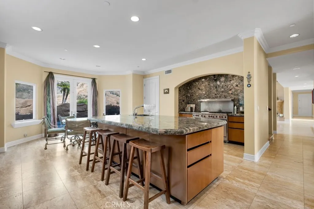 Exceptional custom Mediterranean estate in the prestigious 24-hour guard-gated community of Bell Canyon, offering privacy, elegance, and resort-style living. Ideally located on a quiet cul-de-sac with an elevated setting and private driveway, this impressive residence blends grand architecture with sophisticated comfort. Enter through dramatic iron double doors into a grand foyer that immediately sets the tone for the home’s scale and craftsmanship. This beautifully designed residence offers 5 bedrooms and 5.5 bathrooms, including a main-level ensuite bedroom and private office, perfect for guests, multigenerational living, or working from home. The home features a stunning formal living room with soaring ceilings, a fireplace, and a wet bar, a warm and inviting family room, and an elegant formal dining room ideal for entertaining. The gourmet chef’s kitchen is equipped with top-of-the-line appliances, custom cabinetry, granite countertops, an oversized center island, a walk-in pantry, and a bright breakfast nook. Ascend the exquisite wrought iron staircases to the upper level and discover the luxurious primary suite, complete with a sitting area, fireplace, and a spacious spa-like bathroom. Three additional generously sized ensuite bedrooms provide comfort and privacy for family and guests. The resort-style backyard is designed for both relaxation and entertaining, featuring a sparkling pool, spa, waterfalls, and an exciting water slide, creating a true private oasis. Bell Canyon residents enjoy exclusive community amenities, including 24-hour guard-gated security, scenic hiking trails, tennis courts, fitness center, equestrian facilities, and a community park, all while being conveniently close to shopping, dining, and award-winning schools. A rare opportunity to own a luxury estate in one of the most sought-after gated communities in the area.