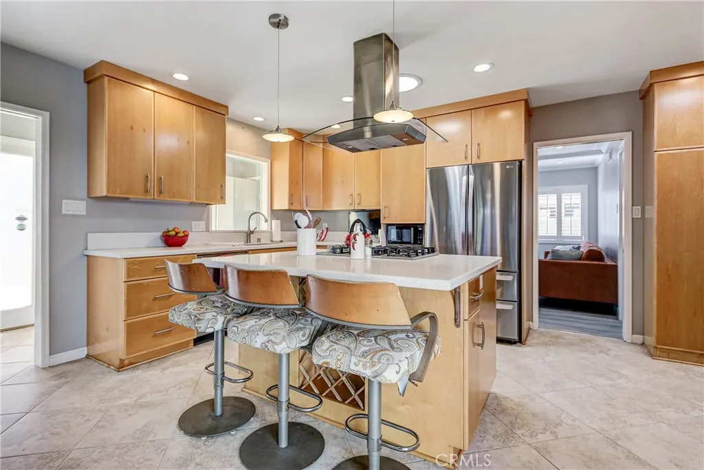 This wonderful home has been beautifully updated. Huge formal living room with cove ceilings, recessed lights and stunning white brick fireplace. Huge kitchen with breakfast bar, custom cabinets, Quartz counter tops, tile floors and built-in desk area. ( closet for stack-able washer/dryer in kitchen). The kitchen opens up to a spacious dining room which opens up to a private patio area for outdoor entertainment. Both baths have been nicely updated. Luxury vinyl plank floors, window shutters and skylights through out. Fresh paint. 2 car attached garage with direct access. Great backyard for the kids to play.