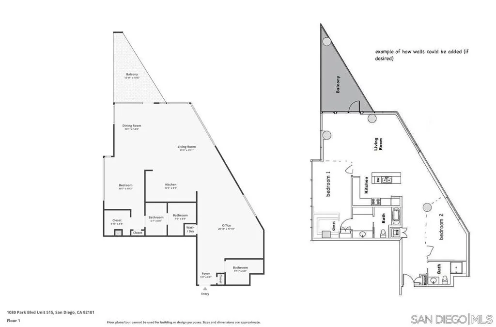 !!BEST PRICE CONDO IN SMART CORNER!! * LARGE PRIVATE BALCONY * 2 CAR PARKING * AMAZING CITY VIEWS. Welcome to Smart Corner, where modern design meets the energy of city living. This expansive 5th-floor corner unit offers 1,422 square feet of stylish, open-concept space with soaring ceilings, exposed concrete accents, and walls of windows that flood the home with natural light. This complex is VA approved! The spacious kitchen is perfect for gathering, featuring a central island with a breakfast bar, stainless steel appliances, and ample cabinetry. The open floor plan flows seamlessly into the living and dining areas, while a large covered balcony invites you to enjoy sweeping city views. The split-bedroom layout features 2 well-defined bedroom areas: a generous primary suite boasting a walk-in closet and ensuite bath, plus an open secondary bedroom area and full bath ideal for guests or a home office. This home includes in-unit laundry and two tandem parking spaces, offering convenience and ease of living. At Smart Corner, you’ll enjoy resort-style amenities including a rooftop terrace with 360° views of the city and bay, a community garden, BBQ area, hot tub, and onsite management with security. Perfectly situated, you’re just blocks from Balboa Park and minutes from Downtown, Little Italy, Petco Park, and San Diego Bay, with easy access to freeways and public transit. Experience the very best of urban living in one of San Diego’s most vibrant communities. Technically, this is a zero-bedroom/studio with open rooms. This complex is VA approved!