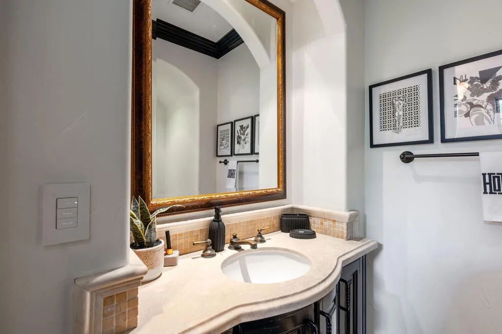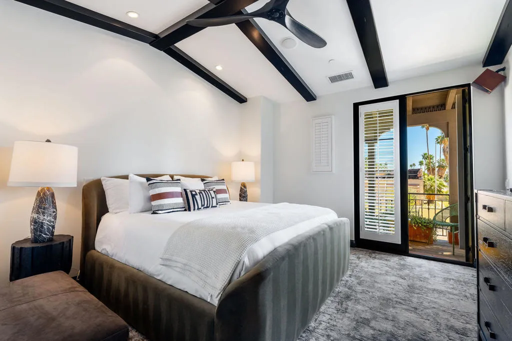 This beautifully updated former model home at St. Baristo has been thoughtfully redesigned with a contemporary aesthetic. As a desirable end unit, the home is filled with natural light and enjoys exceptional privacy with no direct views into neighboring units.This two-story townhome-style residence features three bedrooms and two bathrooms upstairs. The spacious primary suite includes a private en-suite bath and a charming east-facing sitting balcony, perfect for enjoying morning sunshine.The main floor offers an open-concept layout with a living room and family room surrounded by multiple south-facing windows that frame beautiful mountain views. The open kitchen flows seamlessly into the family room, which features a cozy fireplace, creating a warm and inviting gathering space.Adjacent to the kitchen is a bright breakfast area with buffet cabinetry, highlighted by new contemporary lighting fixtures. French doors lead from the breakfast area to a private south-facing patio, complete with a fireplace, BBQ area, and plenty of space for outdoor seating while taking in the stunning mountain scenery.Additional conveniences include:Powder Room on the main floor. Attached two-car garage with direct access from the kitchen areaLaundry room and built-in desk workspace just inside the garage entryResidents enjoy access to a large central courtyard with guest parking, which leads to the resort-style community pool and observation deck, offering a relaxing and scenic setting.