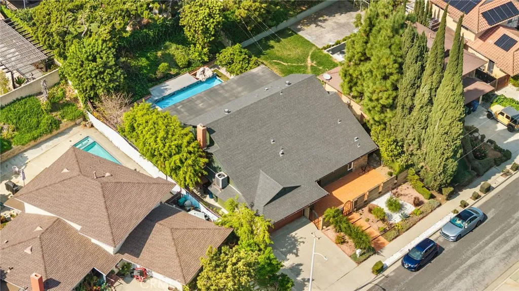 Welcome to this spacious two-story home located in a quiet neighborhood of Hacienda Heights. Situated on an approximately 8,308 sq ft lot, this property offers 4 bedrooms, 2.5 bathrooms (1 bedroom and 1.5 bathrooms downstairs), and about 2,085 sq ft of comfortable living space, designed for both everyday living and entertaining. Enter through the private wrought iron gate to the front courtyard. Step through the front entrance and you are welcomed by high ceilings that create a bright and airy atmosphere. The living room features a fireplace framed with marble tiles. The upgraded kitchen includes granite countertops and stainless-steel appliances, including a KitchenAid 5-burner cooktop, kitchen hood, and GE double ovens. Large newer double-pane vinyl windows allow natural light to fill the living spaces, enhancing the openness of the expansive living room and family room. The home features a primary suite conveniently located downstairs. The primary bathroom is upgraded with a large shower and a new vanity. Three bedrooms are upstairs. The house has many upgrades, including a newer Carrier air conditioning system for year-round comfort, newer vinyl windows and sliding doors, remodeled bathrooms, wood flooring throughout, a newer roof, and a newer water heater. The large backyard offers excellent space for relaxation and entertaining, featuring an extra-large patio perfect for outdoor dining and gatherings. An above-ground pool, which can easily be converted into a decorative koi pond or water feature, and the yard is surrounded by multiple fruit trees, creating a private, garden-like setting. Located on a small, quiet, and peaceful cul-de-sac, this home is conveniently close to the 60 Freeway, shopping, dining, and daily conveniences, while still offering a peaceful residential environment.