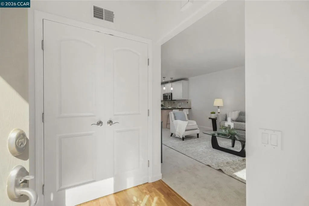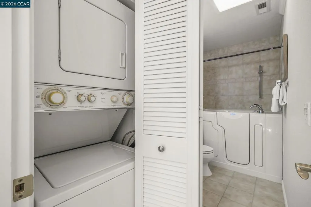 Discover effortless living in this beautifully reconfigured, level-in Golden Gate model. Offering two bedrooms and two bathrooms in a prime location just moments from the golf course, clubhouses, and Rossmoor’s premier amenities. Quality craftsmanship shines with custom pearl-glazed cabinetry, slab granite counters, stainless steel appliances including a convection oven, tumble marble backsplash, recessed lighting, three skylights, and dual-pane windows and doors. Additional features include mirrored closet doors, closet organizers, stack washer/dryer, and over 1,200 square feet of comfortable living space. The spacious primary suite offers generous closet space and abundant cabinet storage. Two sliding doors open to a covered atrium sunroom with a large picture window—perfect for year-round indoor/outdoor enjoyment—with convenient rear access and a short walk to the carport. Move-in ready and ideally located—come experience the Good Life in Rossmoor.