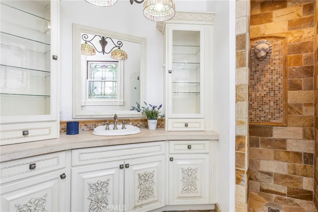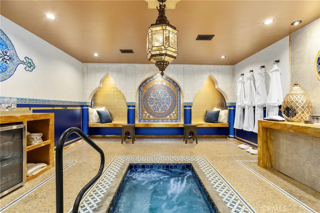 FIRST SHOWING: GRAND OPENING SATURDAY APRIL 4TH, 2026 FROM 1-4PM Located in the heart of coveted Eastside Costa Mesa, this extraordinary four-story architectural residence stands as one of the neighborhood’s most distinctive homes. Privately gated and designed with remarkable scale, the property blends character, craftsmanship, and unforgettable living spaces. Inside, soaring vaulted ceilings and walls of windows fill the home with natural light, while beautiful stained glass details add artistry and charm throughout. The updated chef’s gourmet kitchen features granite countertops, stainless steel appliances, wine refrigerator, center island, and walk-in pantry, opening seamlessly to generous dining and living areas designed for both everyday living and entertaining. A spectacular rotunda entertainment room serves as the architectural centerpiece of the home, showcasing a dramatic double-vaulted ceiling with surrounding windows, custom wood paneling, a hand-painted sky ceiling, and a striking chandelier sourced from Caesars Palace in Las Vegas. The space is complemented by an impressive built-in bar designed for hosting and gatherings. The residence offers three spacious bedroom suites, each with its own private bathroom. The grand primary retreat features a fireplace, wood flooring, heart-motif stained glass windows, and a circular staircase leading to a private bonus lounge and patio. Additional highlights include a private Turkish hammam spa with steam room and jacuzzi, solar panels, and an expansive three-car garage including limousine-length parking and workshop space. This remarkable residence combines architectural drama, luxury amenities, and distinctive design, making it a truly iconic home in Eastside Costa Mesa.