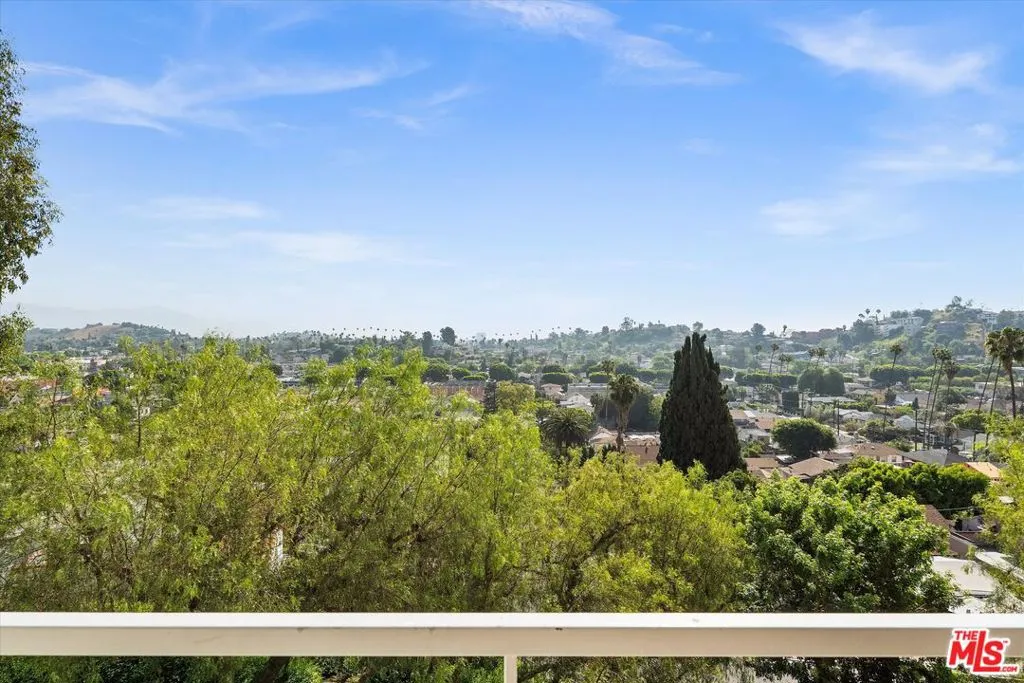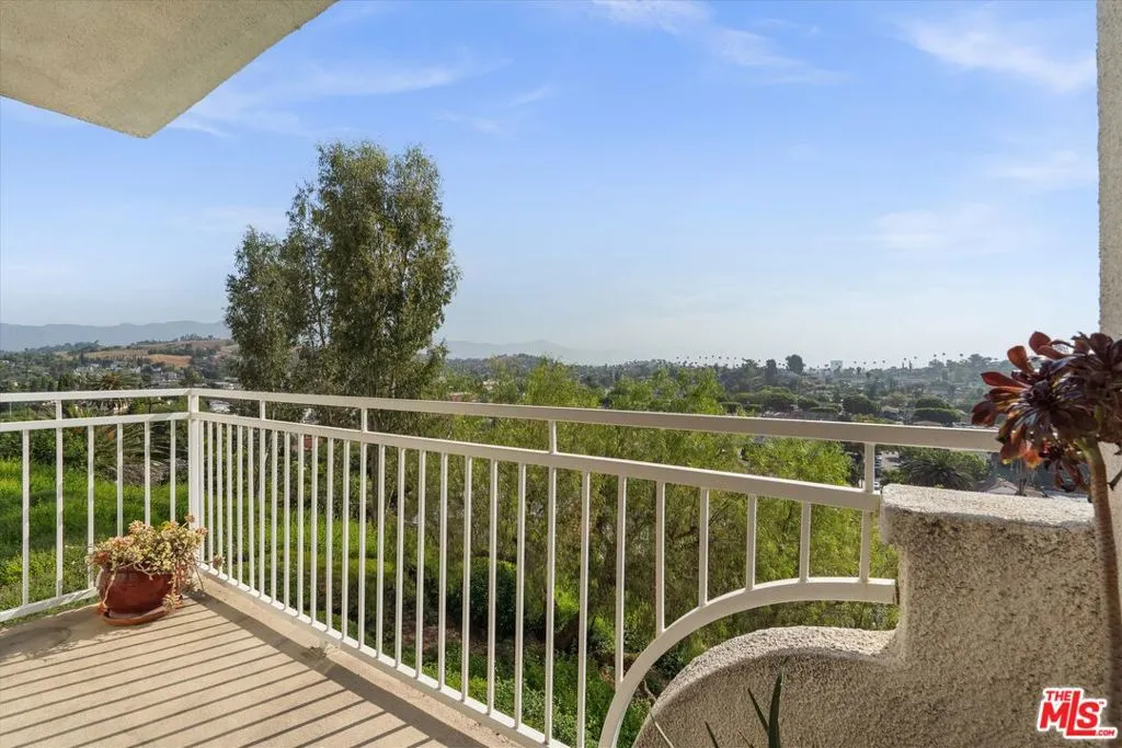 Perched atop Templeton Street in the gated Hilltop Colony community, this spacious 1-bedroom, 2-full bathroom, + office/flex space (currently used as a second bedroom) offers sweeping treetop views to the San Gabriel Mountains. The 1,086 sq ft condominium features engineered hardwood floors, an updated kitchen with newer cabinetry and stainless steel appliances, and convenient in-unit laundry. The generous primary suite includes a large en-suite bathroom with a double-sink vanity. A private balcony off the living room provides the perfect spot to relax and enjoy the panoramic hillside views. Additional highlights include two tandem parking spaces in the gated garage and a private storage unit. Hilltop Colony offers 24-hour guard-gated entry, a pool and spa, playground, and picnic area overlooking the neighborhood park. Located just minutes from Downtown LA, Cal State LA, Alhambra, and South Pasadena, this home combines scenic hillside living with excellent city access.