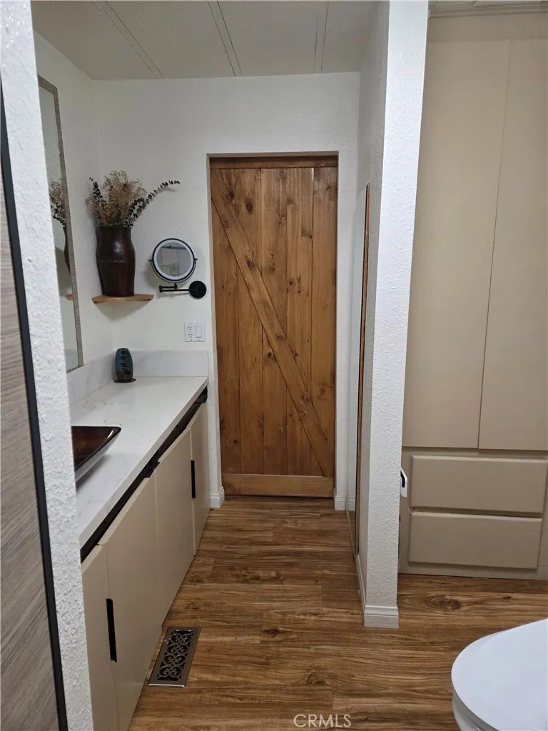 Make this beautifully remodeled Manufactured Home 2 bedroom and 2 bathroom, Your forever home. Located in the amenity rich 55+ Community of Banning Estates. You Own the Land. Open living space, Spacious kitchen with newer appliances ,a custom butcher block island with seating, an electronic charging drawer , a pantry with roll out shelves .Abundance of cabinets in kitchen and laundry room .Magnificent plantation shutters throughout the home .Beamed ceiling in dinning and living room. Upgraded USB Outlets ,Living room has a custom tongue and grove accent wall, in wall tubing in living room and guest bedroom for entertainment cords, hidden access panel to bathroom water lines. All appliances are included. LG full sized stacked washer and dryer. The quest bedroom has a wall to wall closet with shelves for storage. The master bedroom has walk-in closet ,a mirrored gym area access to the east facing deck and back yard. the bathrooms have walk in shower and lower flow toilets, wired for bidets or heated towel rack. The Master bath has a barn door entry and floor to ceiling linen storage. HOA $145, includes gated RV storage. This coach has Solar, Earthquake bracing, Permanent Foundation, Dual Paned Windows, interior, exterior walls upgraded insulation. Life Source whole house .Water Filter, Newer AC and Furnace, Electric Water Heater ,Upgraded Electric panel 30 amp .RV Outlet . 8 Camera hard wired security system with remote monitoring capabilities . 2 car garage full insulated and epoxy shield flooring .Low maintained yard with astro turf doggie run, automatic doggie door, gated garden with raised bed planters covered. lattice lied patio, 5 man ,35 jet jacuzzi. this Property is located close to Shopping Centers, Churches , Freeway 1-10, Cabazon outlets mall and Casino Morongo