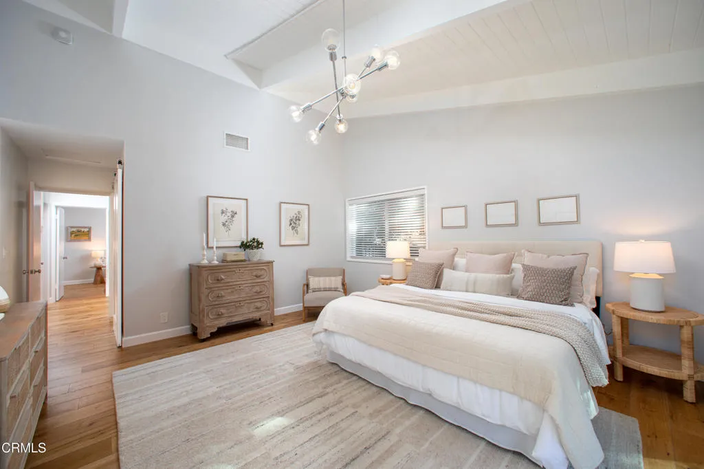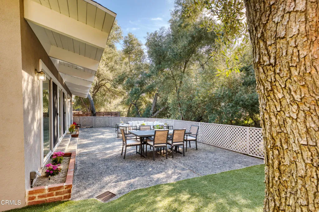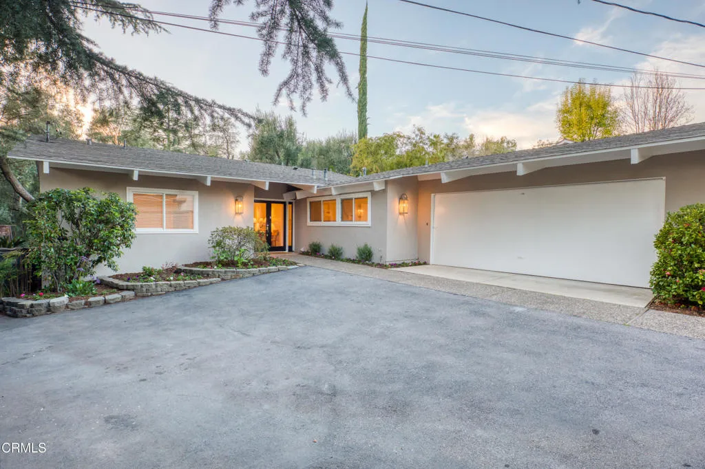 Tucked away from the street along a private, shared driveway, 4599 Hillard offers a sense of c La Canada has to offer. The architecture speaks for itself and is defined by the hallmarks of mid-century modern design -- pitched and angled ceilings that soar and shift as you move through the home with an effortless sense of light and fluidity throughout. The open floor plan invites you in from the moment you step through the front door: a gracious entryway flows seamlessly into a generous living room and dining area, which in turn opens naturally into the updated kitchen, making the home feel both expansive and connected. Whether you're hosting a dinner party or enjoying a quiet morning, the spaces work together in a way that feels entirely intentional. The kitchen has been thoughtfully refreshed with quartz countertops and contemporary finishes, balancing the home's architectural character with the functionality today's buyers prefer. All three bathrooms have been updated as well, offering clean, modern appointments throughout.The primary bedroom is a true retreat -- sliding glass doors open directly to the outdoors, bringing the tree-studded landscape right into your daily rhythm. The large primary bathroom provides the spa-like comfort to match. Three additional bedrooms offer flexibility for family, guests, or a dedicated home office.Outside, the property's 11,671-square-foot lot is graced with mature trees that wrap the home in greenery, creating a natural canopy that blurs the line between indoors and out.La Canada Flintridge is one of the most coveted addresses in the greater Los Angeles area -- a small, beautifully maintained enclave with a genuine small-town character, world-class Blue Ribbon schools consistently ranked among the top in California, and this property offers a quiet remove from the city that feels far greater than the miles suggest.