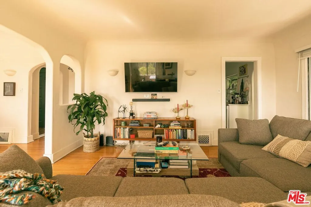VIEWS for days! Perched above the hills of Silver Lake, this spectacular 1926 Spanish-style home showcases jaw-dropping panoramic views of Silver Lake, Downtown LA, and the surrounding mountains. A rare opportunity to own a LEGAL DUPLEX in one of LA's most sought-after neighborhoods. The main residence features 2 spacious bedrooms and 1.5 bathrooms, filled with character, charm, and original architectural details throughout. A private balcony captures jetliner views that stretch across the city skyline, creating the perfect setting for morning coffee or evening sunsets. Inside, natural light pours in throughout the day, creating a warm and inviting ambiance. The formal living room features a romantic decorative fireplace, arched hallways, and timeless built-ins that reflect the home's original character. The clean and inviting interior offers an open and comfortable floor plan, with a spacious living room, dining area, and well-sized kitchen designed for both everyday living and entertaining.The SECOND UNIT is a separate studio with its own kitchen, bathroom, and private lower deck, also enjoying stunning views, Ideal for guests, rental income, or a creative workspace. This storybook 1926 Spanish home blends historic charm with the relaxed lifestyle that defines Silver Lake living. Original details throughout tell the story of nearly a century of Los Angeles history.Located just minutes from the Silver Lake Reservoir, dog park, Botanica, LaMill Coffee, and many of the neighborhood's favorite cafe's, restaurants, and sunset hangouts, this home offers the perfect balance of tranquility, character, and city convenience.A true Silver Lake gem with unforgettable views- must see!
