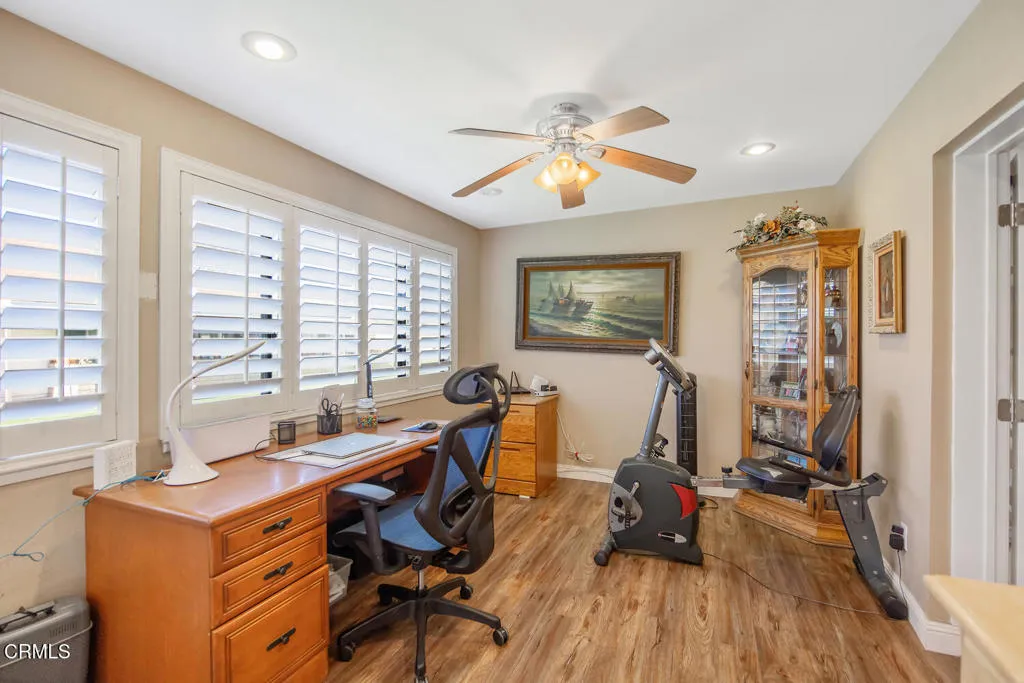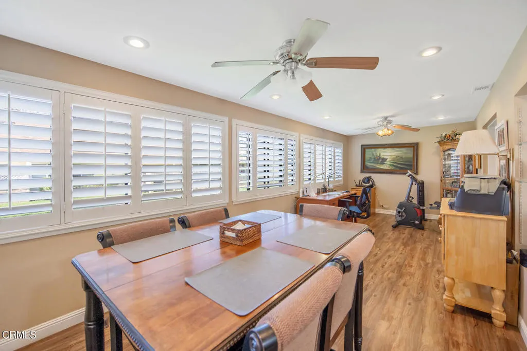 OPEN HOUSE SUN 3/22 12-2 MUST CALL LISTING AGENT TO GET THROUGH LV GATE!Welcome to one of the most sought-after floor plans in Leisure Village 55+ gated community--the highly desirable Holmby II model, a layout buyers love but rarely find since only a limited number were built. This beautifully updated home offers over 1,500 sft of living space thanks to a thoughtfully integrated patio enclosure that creates a bright, spacious living area filled with natural light. Large windows & multiple skylights throughout the home enhance the open feel & bring the beautiful Camarillo sunshine indoors.The remodeled kitchen has been reimagined with portions of the original walls opened up to create a more open-concept layout, perfect for modern living and entertaining. The home features durable vinyl plank flooring throughout, providing a clean, contemporary look with easy maintenance. Both bathrooms have been tastefully remodeled, offering updated finishes and comfort.The very spacious primary bedroom provides a comfortable retreat and includes a walk-in closet, a feature buyers particularly appreciate in this model. The popular Holmby II design offers excellent flow and comfortable living spaces, making it one of the most desirable layouts for buyers looking for a home in Leisure Village Camarillo 55+ that combines functionality, light, and upgraded features.Living in Leisure Village, Camarillo's premier active adult 55+ community, means enjoying a vibrant lifestyle with incredible amenities and activities. Residents have access to a private 18-hole par-3 golf course, swimming pool and spa, fitness center, tennis and pickleball courts, bocce ball, shuffleboard, billiards, woodworking shop, ceramics studio, sewing room, library, and RV parking. The community also offers dozens of clubs, social groups, classes, and events including art, music, travel groups, gardening, cards, and more--making it easy to stay active and connected.The HOA provides exceptional value, covering 24-hour guard-gated security, cable TV, high-speed internet, water, trash, sewer, landscaping, exterior maintenance, roof replacement, exterior painting, and maintenance of all common areas and amenities, allowing homeowners to enjoy a low-maintenance lifestyle.Located in the heart of Camarillo with its mild coastal climate, nearby shopping, restaurants, parks, and easy access to the Pacific Coast, Leisure Village is one of the most desirable 55+ retirement communities in Ventura County